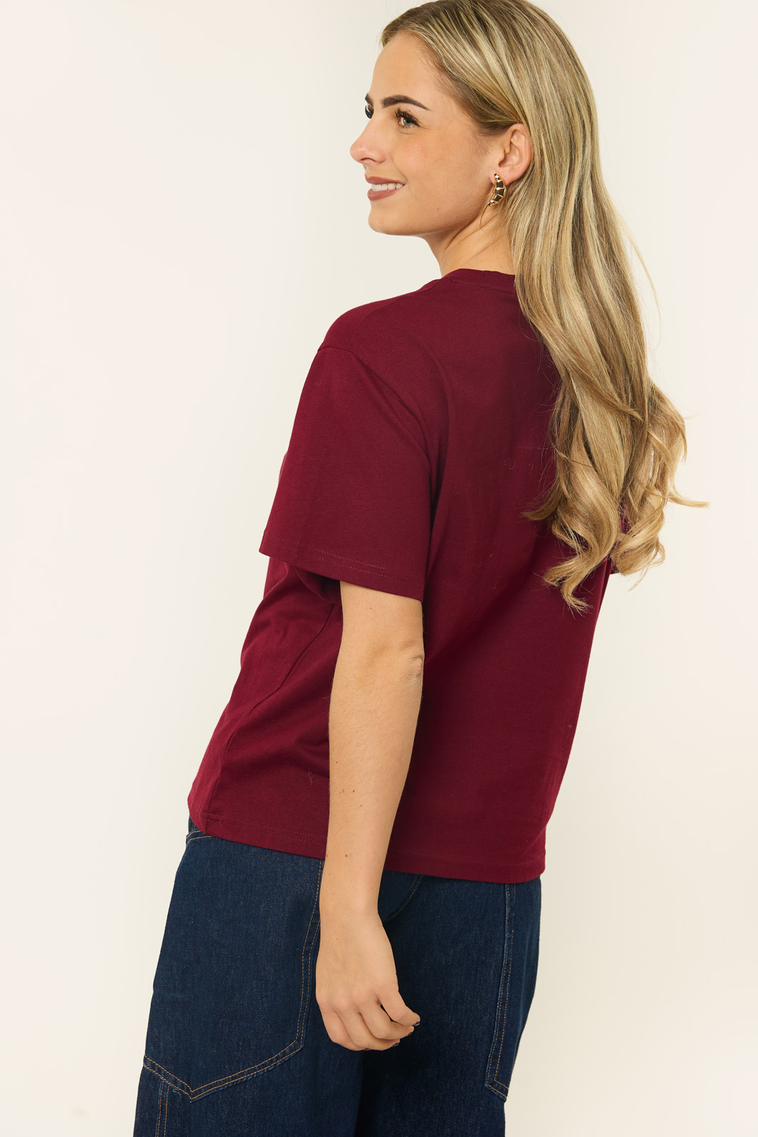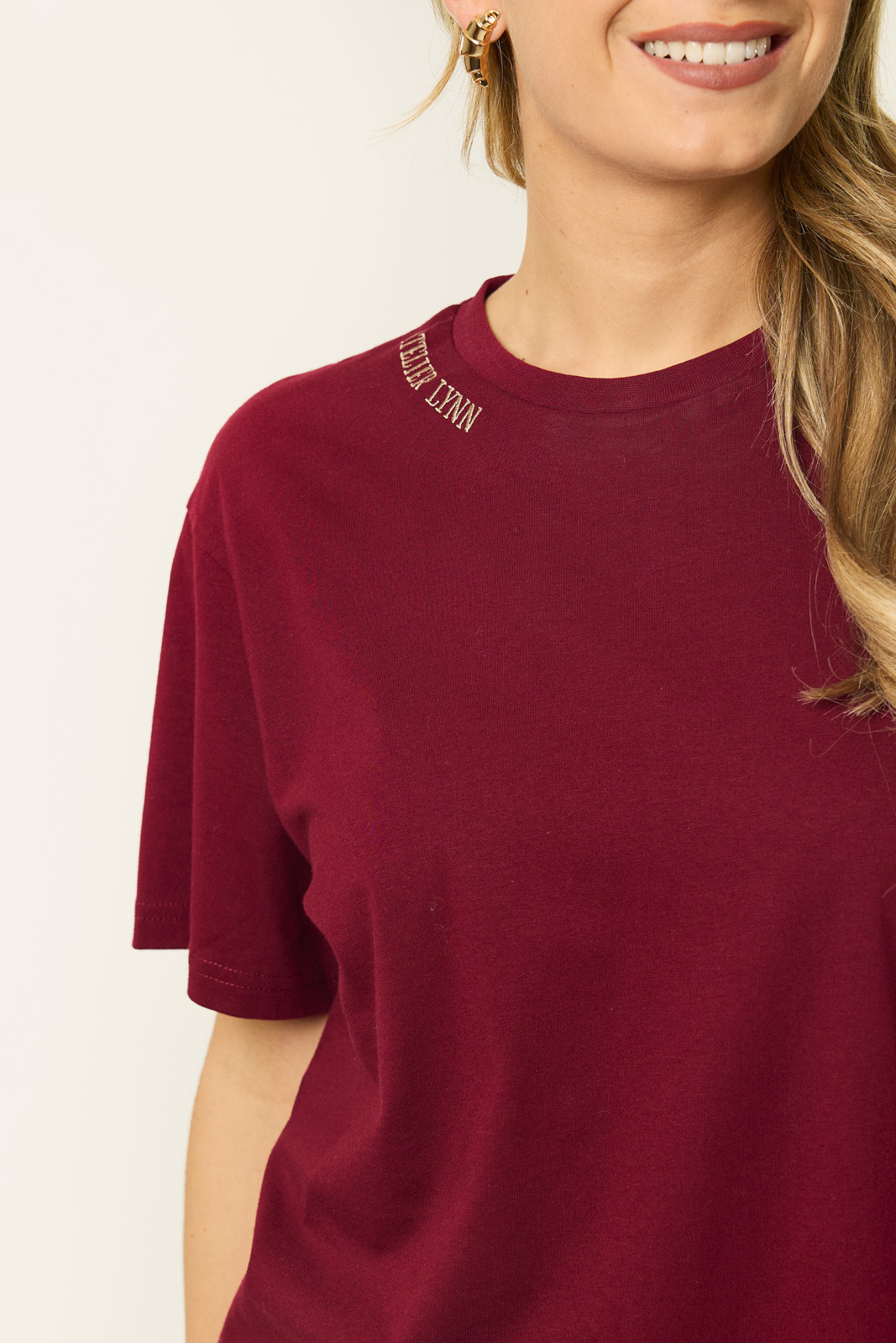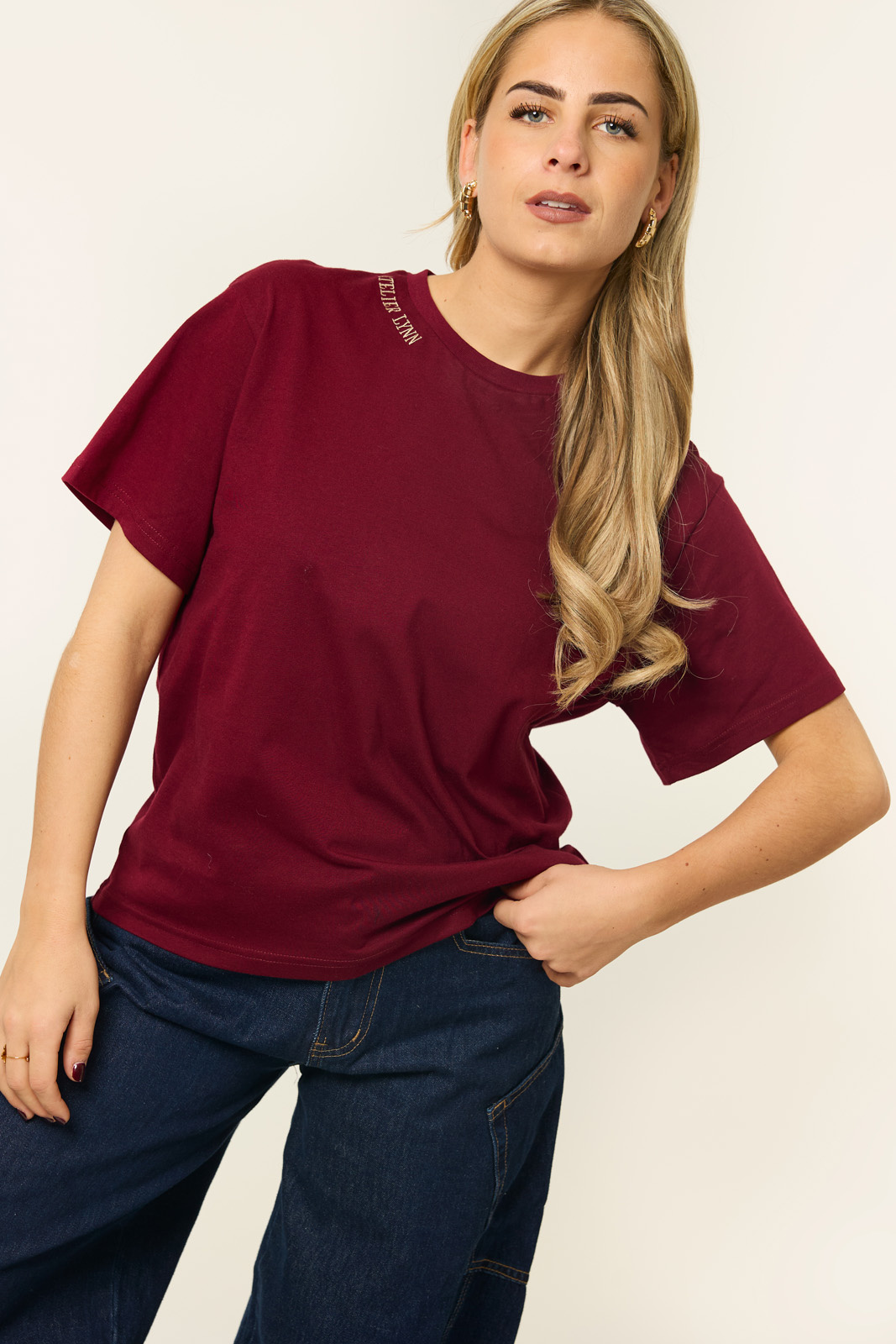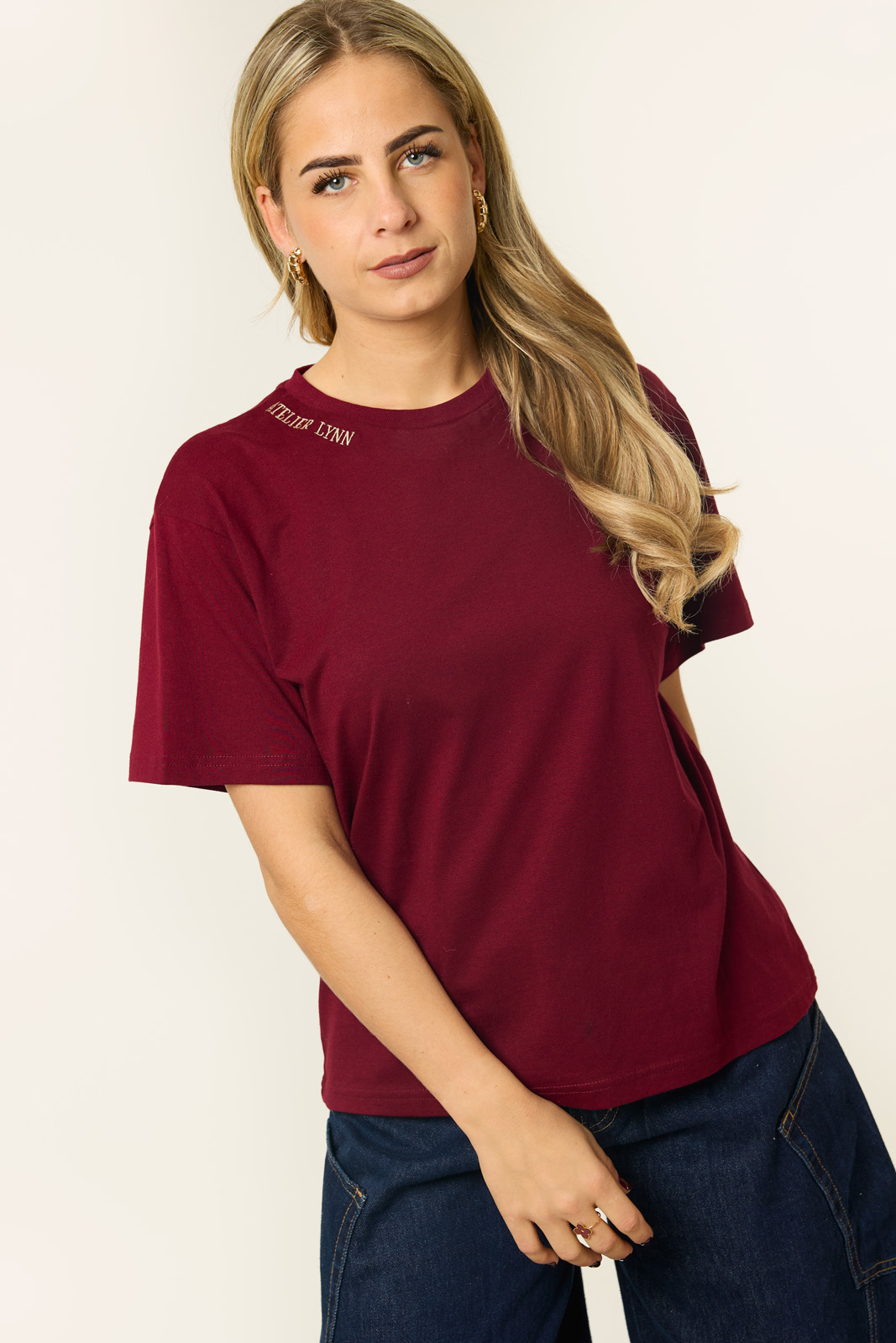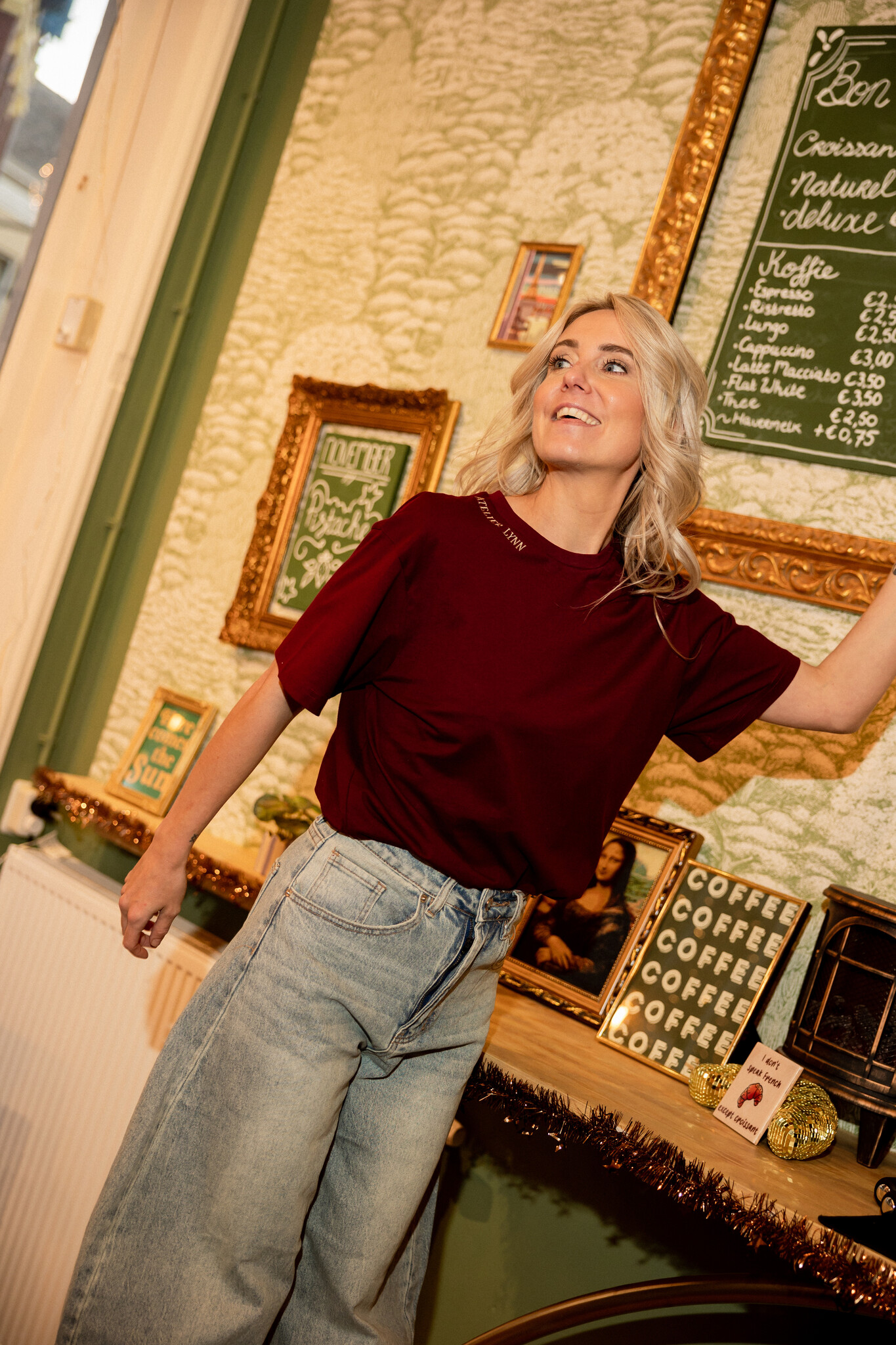De donkerrode Atelier Lynn t-shirt is zo’n basic die je elke dag uit je kast wilt pakken: zacht, comfy en met dat subtiele borduursel op de schouder dat het shirt net even specialer maakt. De relaxed fit valt mooi losjes en maakt het ideaal om casual te dragen op een jeans, maar ook perfect om te combineren in een gelaagde look met een blazer of vest. Dankzij de tijdloze burgundy kleur past dit T-shirt moeiteloos in je capsule wardrobe en blijft het seizoen na seizoen een favoriet. Een fijne basic met een luxe touch, typisch Atelier Lynn.