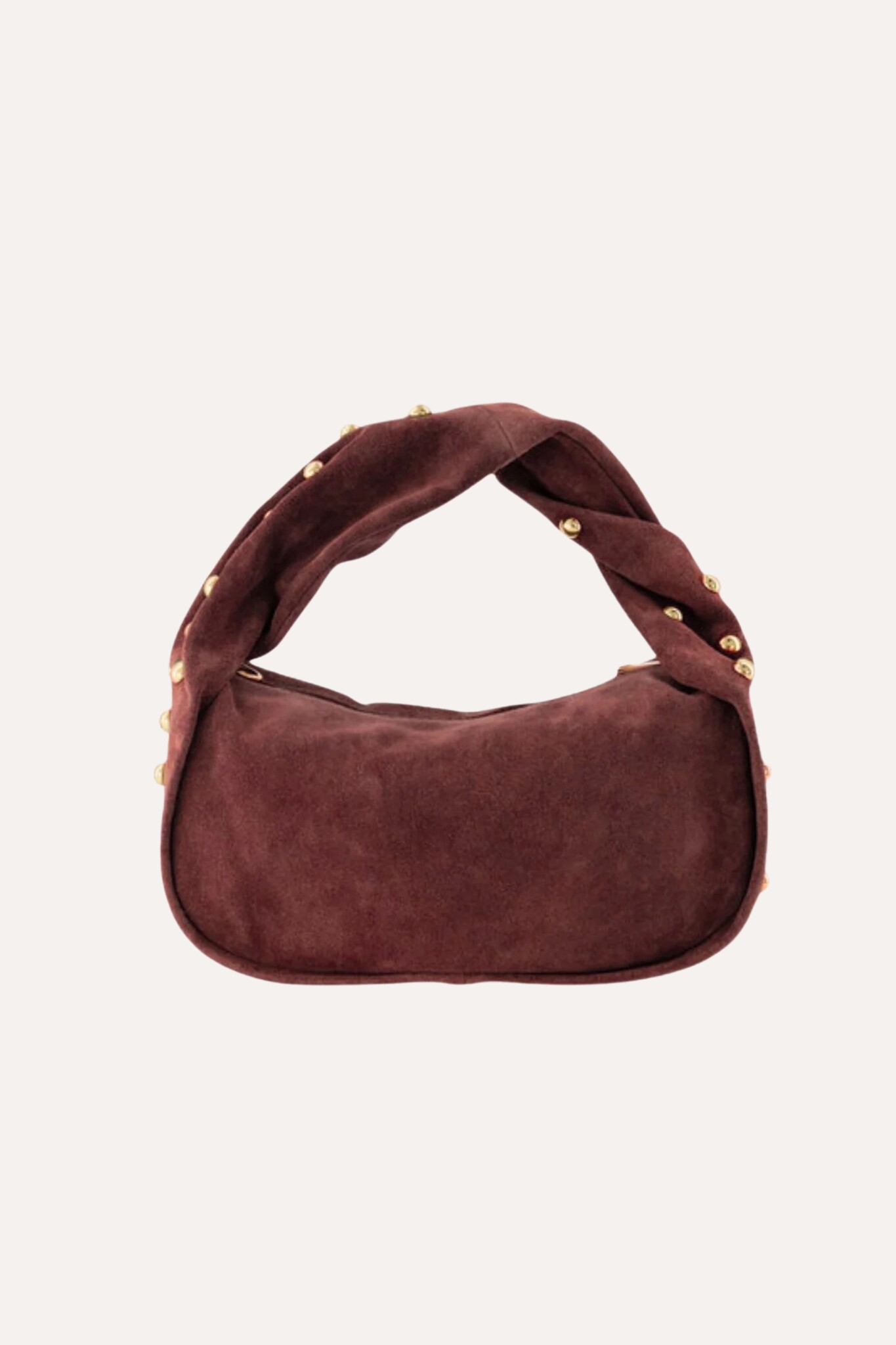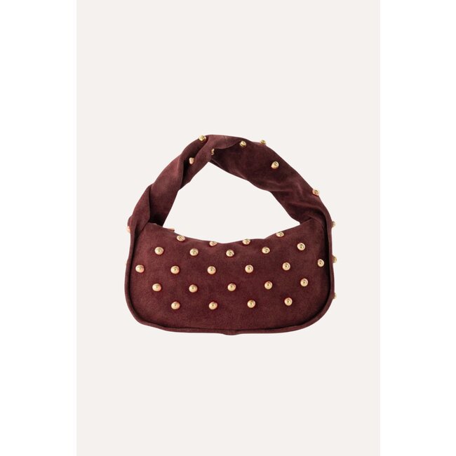 Deze cherry red suède tas is de perfecte mix van basic en statement. Suede is helemaal de trend van aankomend najaar samen met de gouden studs. De tas is ruim genoeg voor al je essentials, ideaal voor dagelijks gebruik of een avond uit.