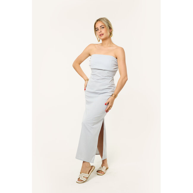 Deze blauwe strapless jurk is zo’n jurk die meteen goed zit. De strapless linnen jurk heeft een mooie aangesloten pasvorm en valt lang langs het lichaam, waardoor de blauwe maxi jurk een elegante en vrouwelijke look krijgt. De zachte blauwe kleur maakt de jurk rustig, maar toch heel stijlvol.