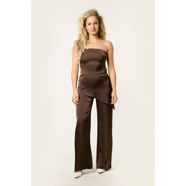 Draag de bruine satijnen broek met een blouse of top voor een chique outfit, of combineer hem met de bijpassende satijnen top voor een complete set. Perfect voor een diner, feestje of wanneer je outfit net wat specialer mag zijn.
