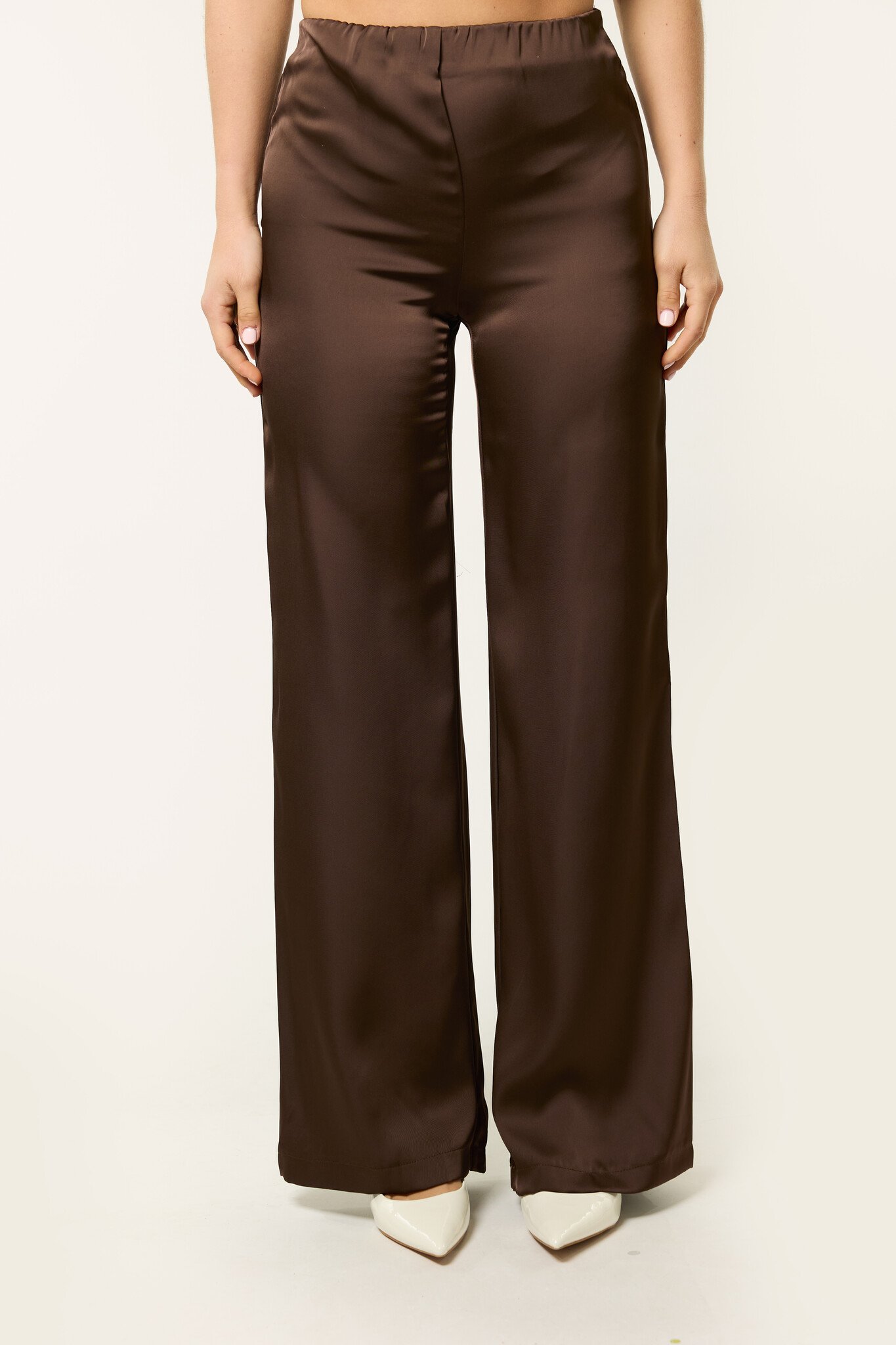 Deze bruine satijnen pantalon geeft je outfit meteen een elegante uitstraling. De satijnen stof heeft een mooie glans en laat de satijnen broek soepel langs het lichaam vallen. De wide leg pasvorm zorgt voor een stijlvolle en vrouwelijke look die makkelijk te combineren is.