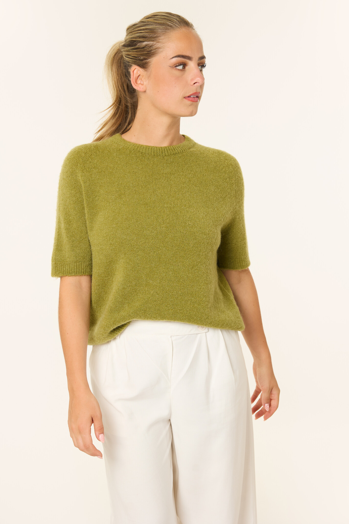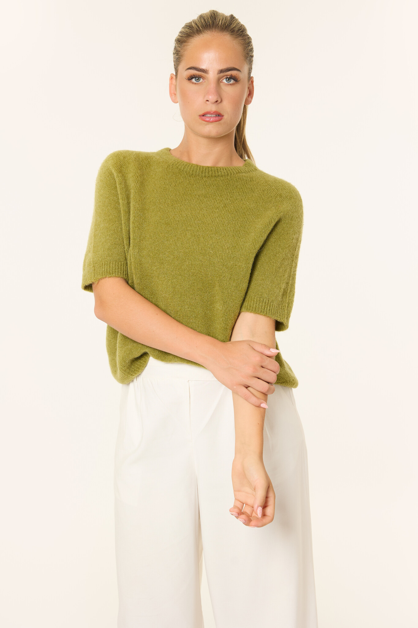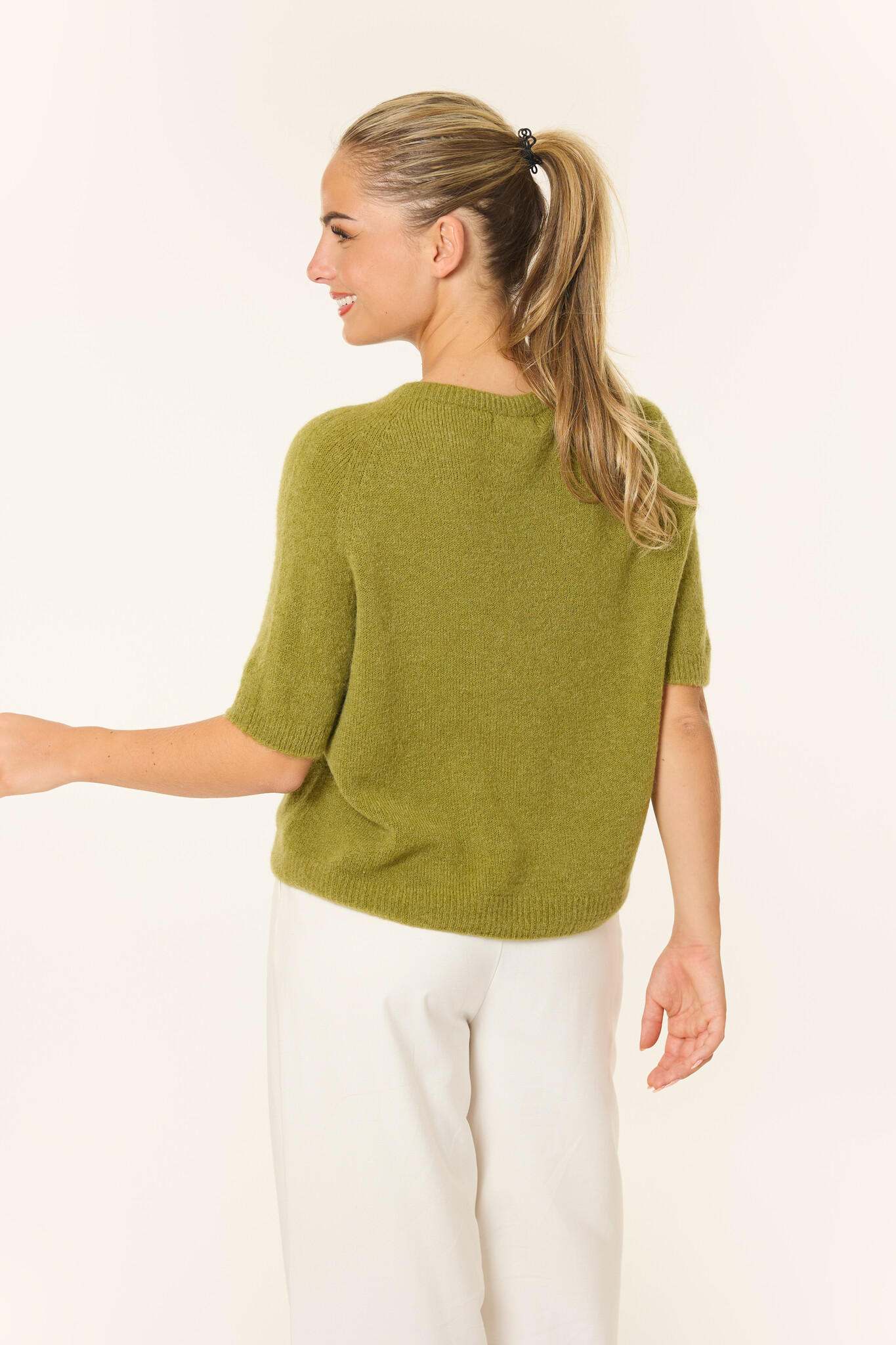 Deze groene gehaakte trui met korte mouwen is een echte must-have voor het najaar. Het luchtige gehaakte design geeft een casual maar toch stijlvolle uitstraling en is super makkelijk te combineren met jeans, shorts of een rokje. De frisse groene kleur maakt je outfit meteen vrolijk en opvallend. Perfect voor je nieuwe autumn wardrobe.