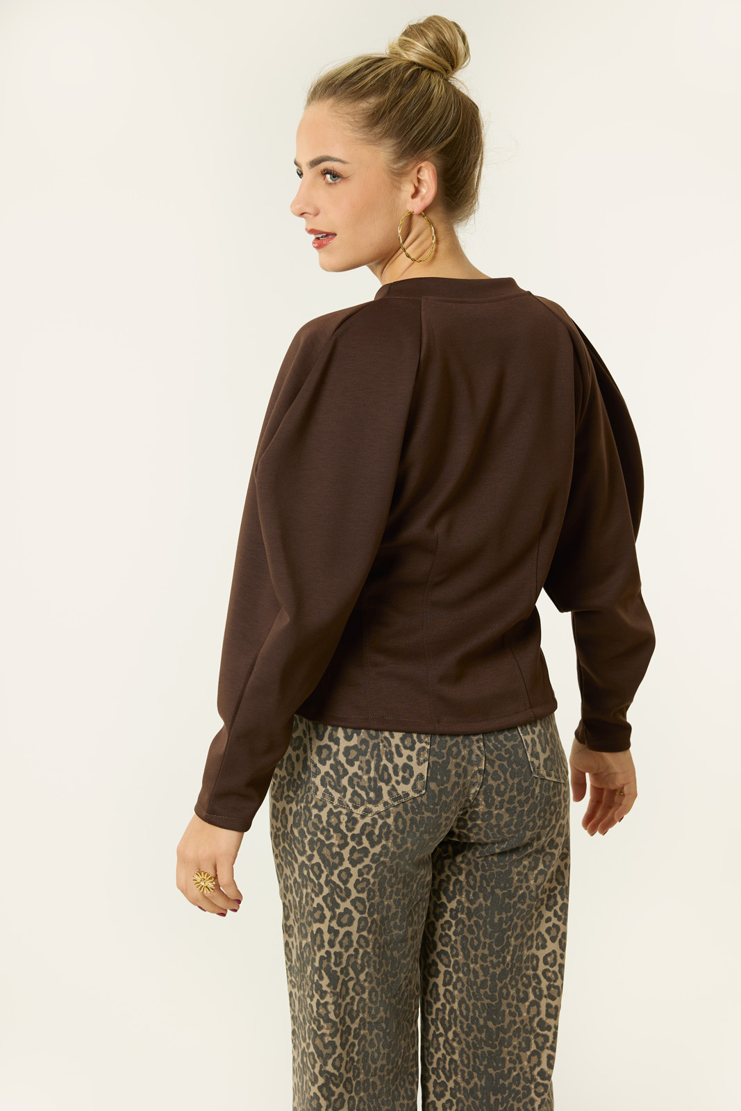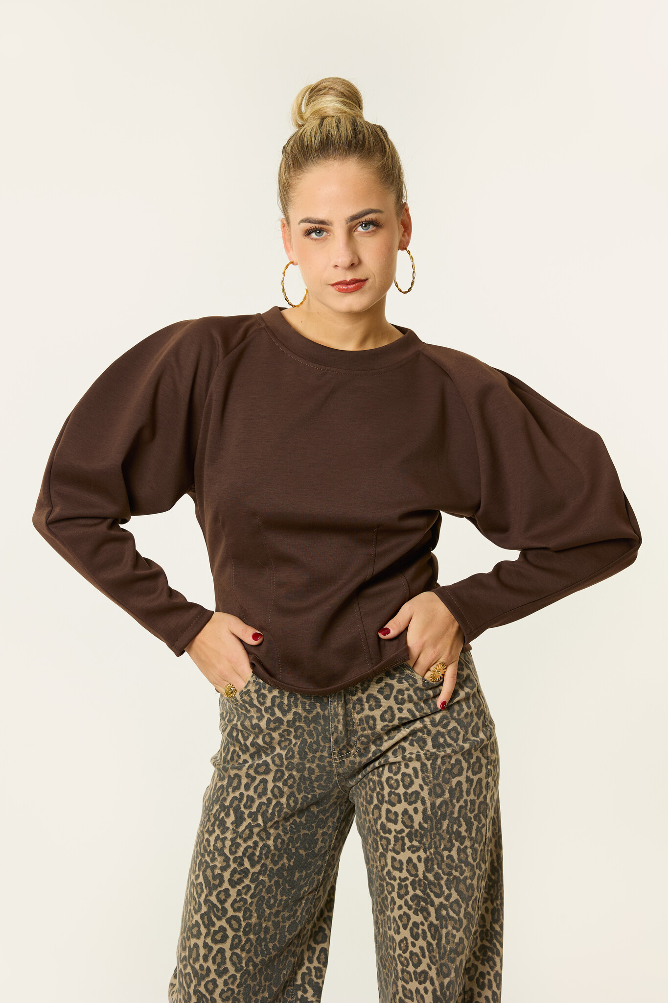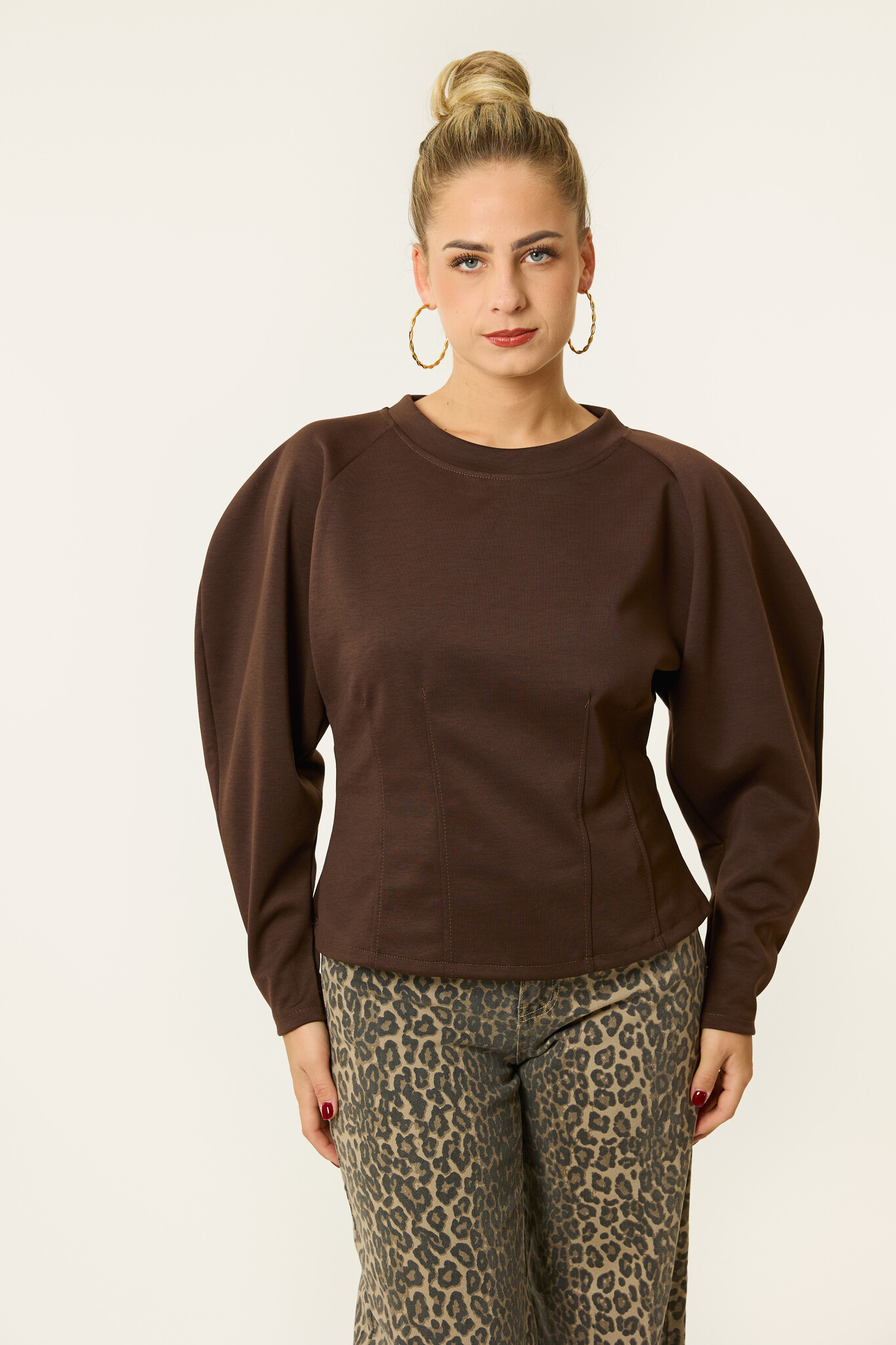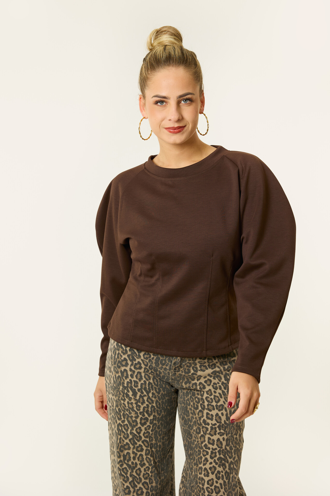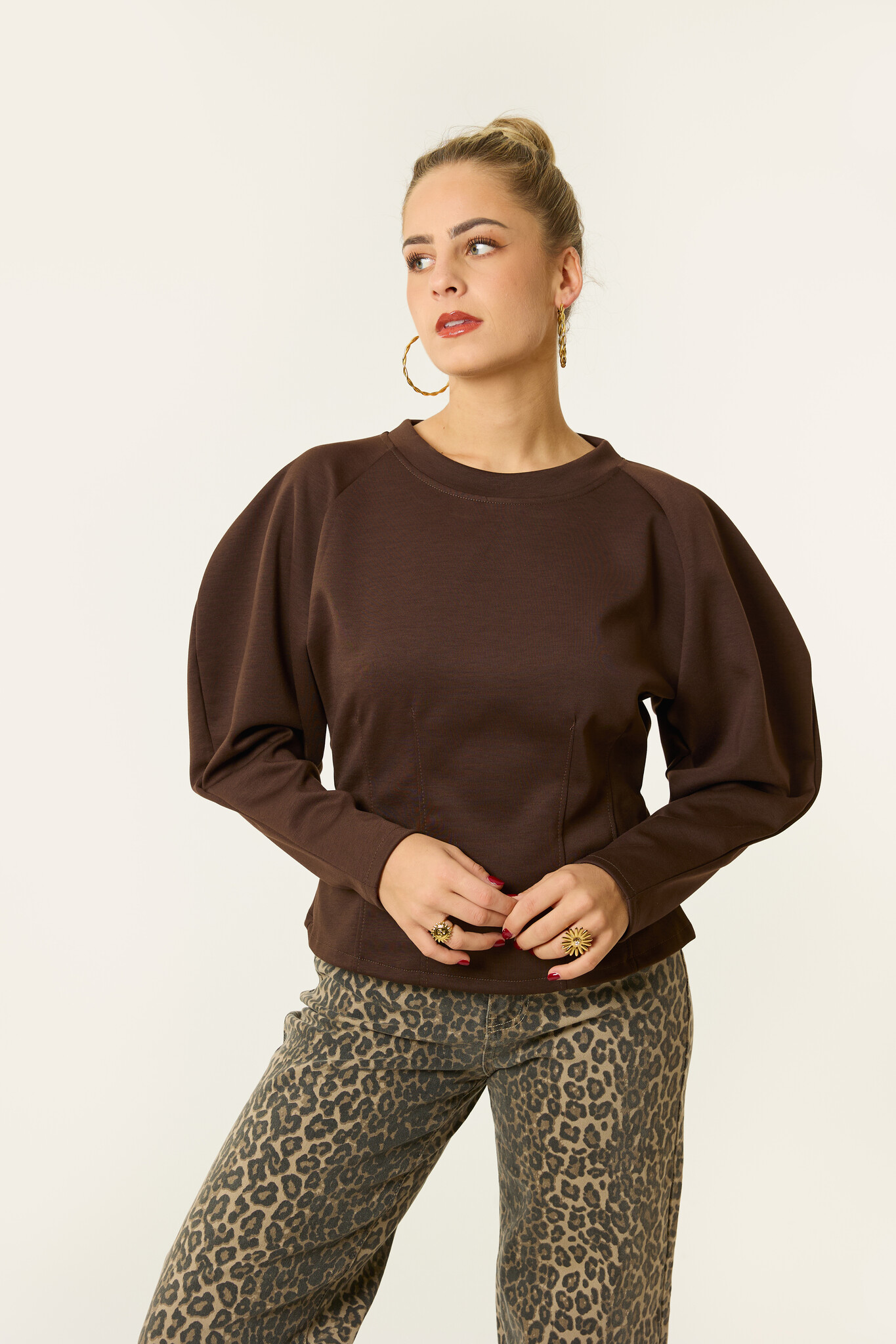 Deze bruine longsleeve top voor dames is comfy én stijlvol tegelijk. De ballonmouwen geven de trui de trendy touch waar je dit seizoen niet omheen kunt. Dankzij de subtiel getailleerde pasvorm zit de top mooi aangesloten, terwijl je hem ook casual draagt op een jeans of een skort. Een ideale basic met nét dat beetje extra.