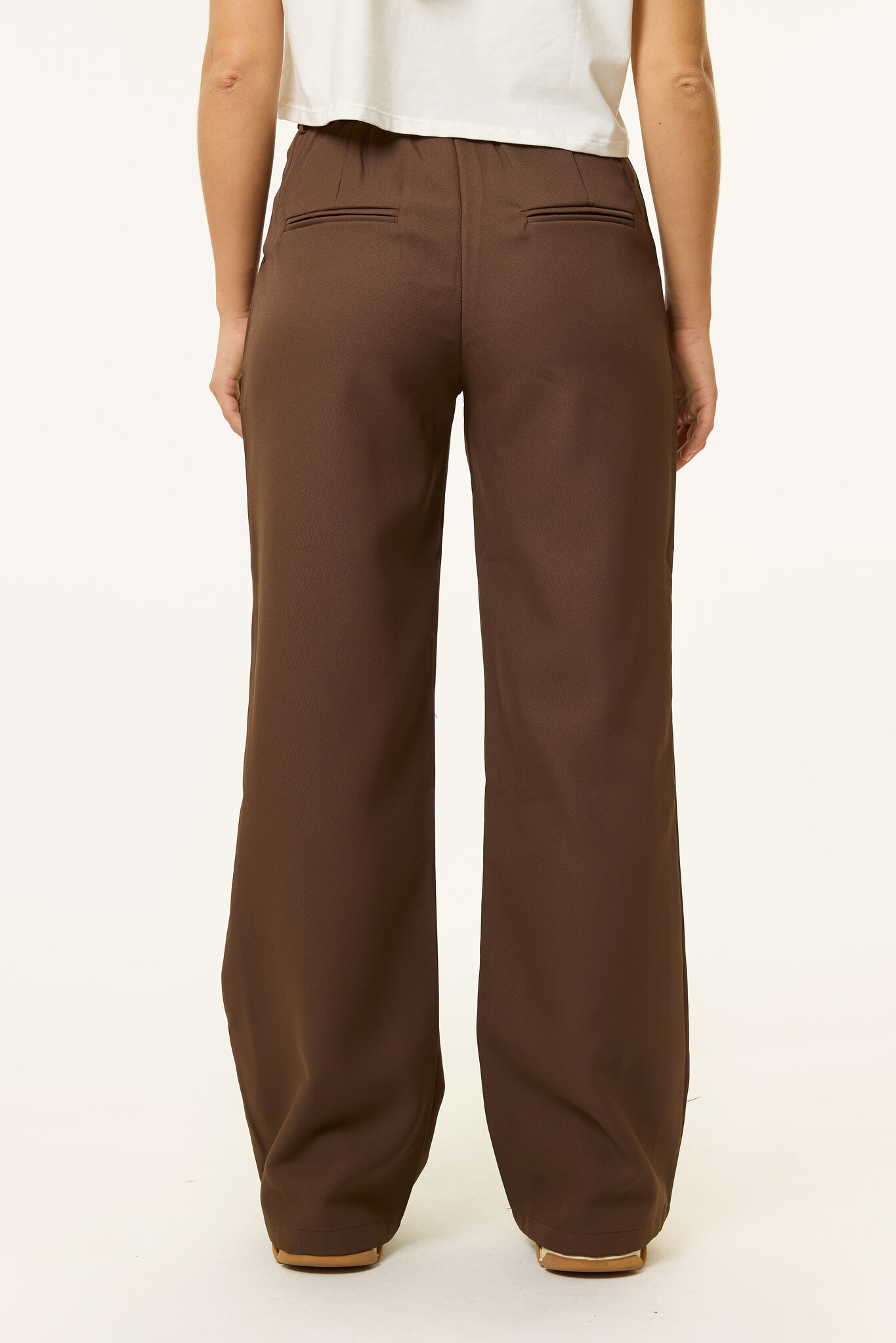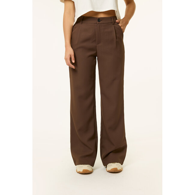 Deze bruine pantalon is de ultieme mix van stijl en comfort. De rechte pasvorm en hoge taille geven een tijdloze uitstraling, terwijl de elastische tailleband zorgt dat de broek mooi aansluit en super comfy zit. Combineer de pantalon met een basic tee en sneakers voor een relaxte look, of draag het met hakken en een blazer voor een meer dressed-up vibe. Dankzij de bruine kleur is deze pantalon voor dames eindeloos te combineren en een echte musthave voor je garderobe.