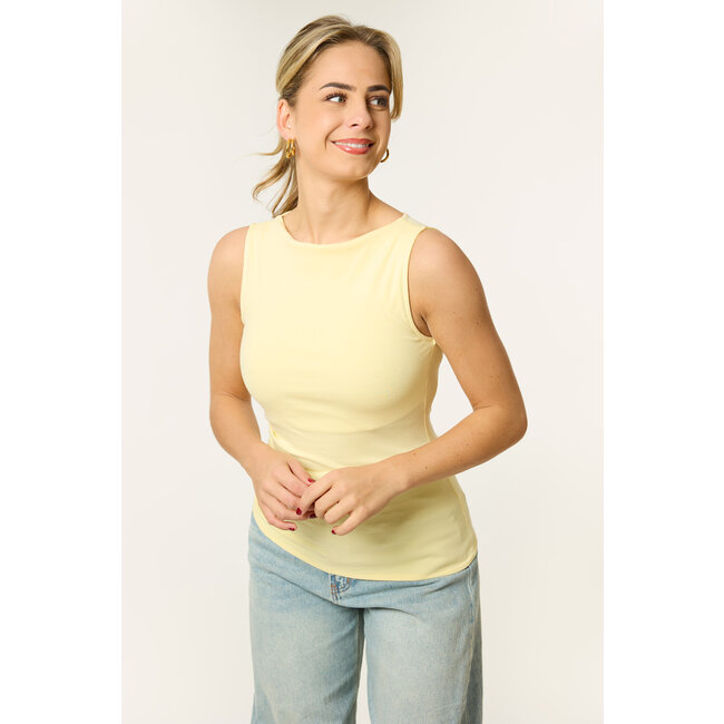 Een basic top die net dat beetje extra heeft! Deze pastel gele top heeft een subtiel schuin aflopende onderkant met een scrunched detail. De stof is zacht, licht stretchend en sluit mooi aan bij je taille. Perfect om te dragen met jouw favoriete jeans of juist te combineren met een rok of pantalon voor een wat nettere look. Casual, comfy en met een uniek detail!