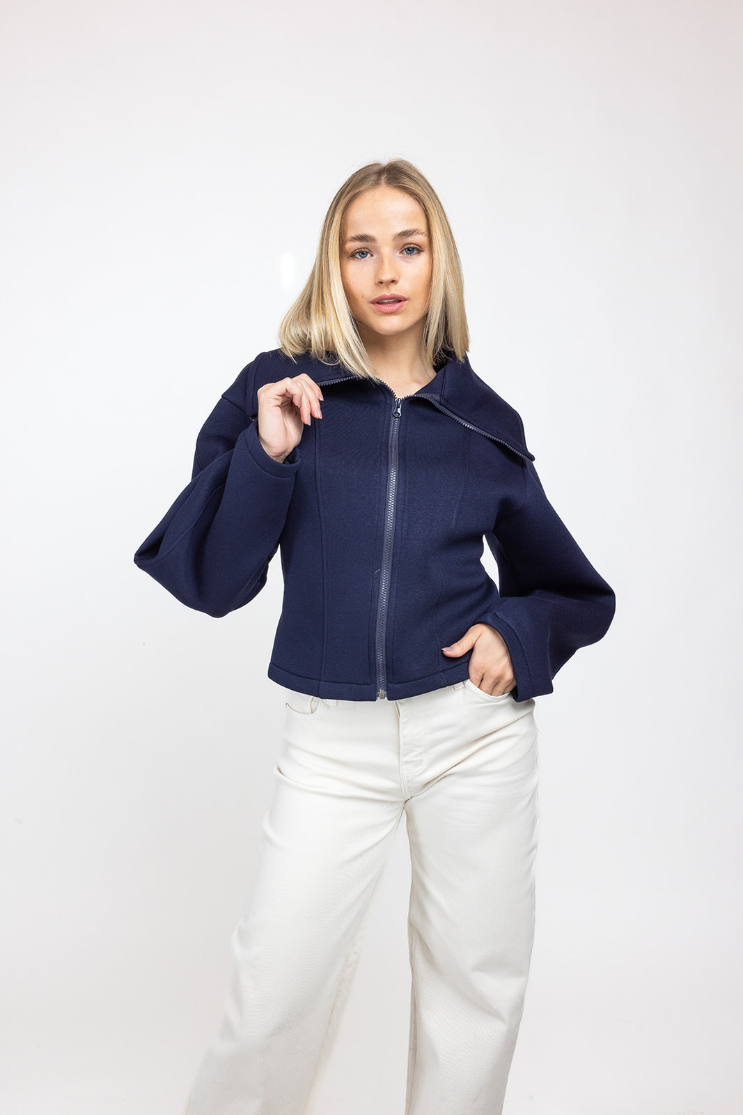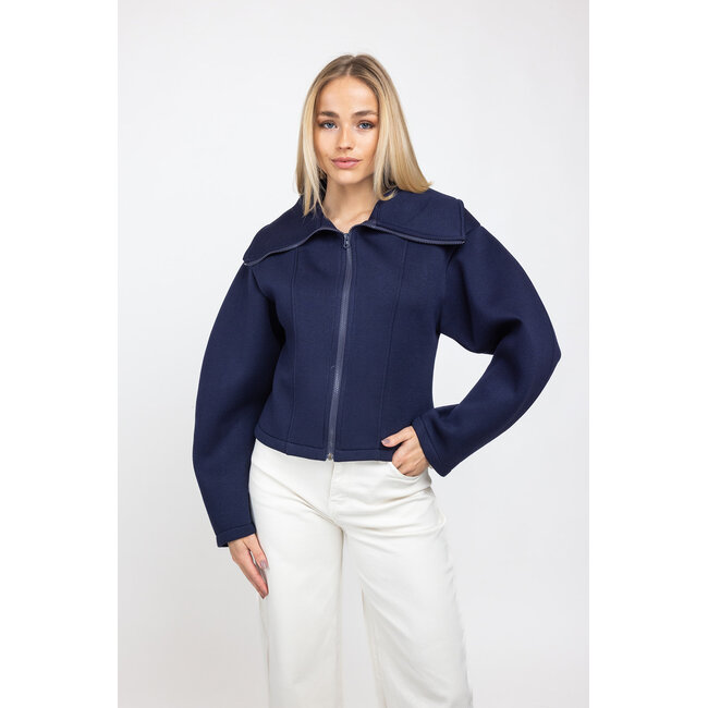 Dit getailleerde vest in het donkerblauw is een stijlvol en trendy item dat niet mag ontbreken in je garderobe. Het vest heeft een mooie aangesloten pasvorm die je taille benadrukt en zorgt voor een vrouwelijke look. De ritssluiting aan de voorkant en de kraag geven het vest een stijlvolle en vrouwelijke uitstraling.