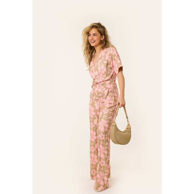 Mona Jumpsuit Extra Lang Bloemen Motief | Groen/Roze