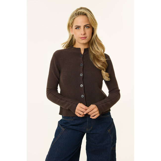 Deze donkerbruine cardigan is een echte essential voor het najaar. De zachte, gebreide stof voelt comfortabel aan en de rechte fit zorgt voor een tijdloze uitstraling. De donkere knopen geven een subtiele, stijlvolle touch en maken de knit makkelijk te combineren. Perfect om te dragen met een jeans voor een casual look of over een blouse voor een meer geklede outfit. Een klassieker die in geen enkele garderobe mag ontbreken.