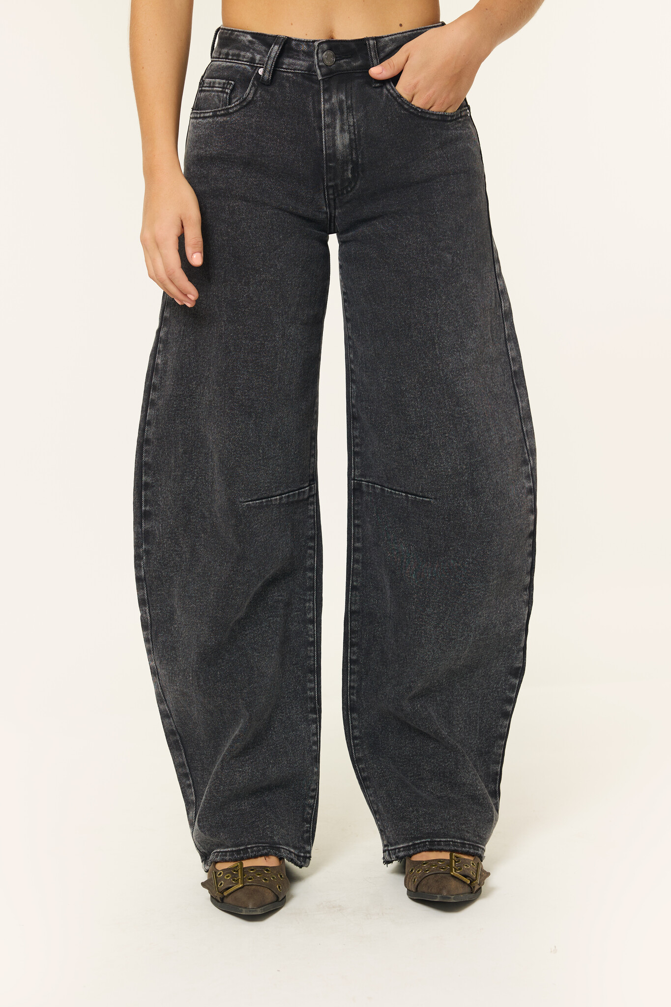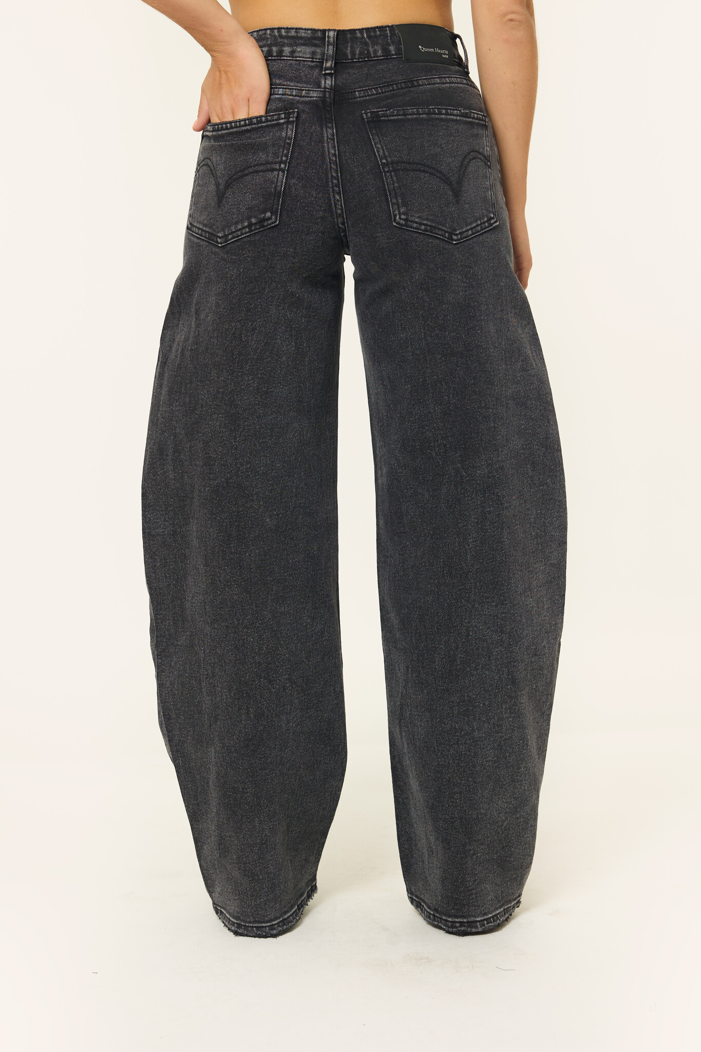 Deze zwarte balloon jeans is perfect voor dagen waarop je comfortabel wilt zijn, maar er toch trendy uit wilt zien. De wijde pijpen en high waist fit geven de broek een stoere uitstraling, terwijl de subtiele vintage wassing zorgt voor een casual touch. Combineer de jeans met een cropped jasje of een top voor een stijvolle look.