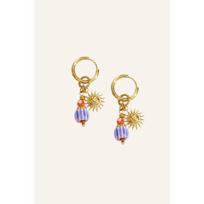 Oorbel met bedeltjes blauw | Goud