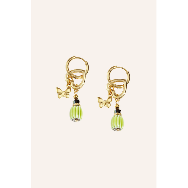 Oorbel met bedeltjes groen | Goud