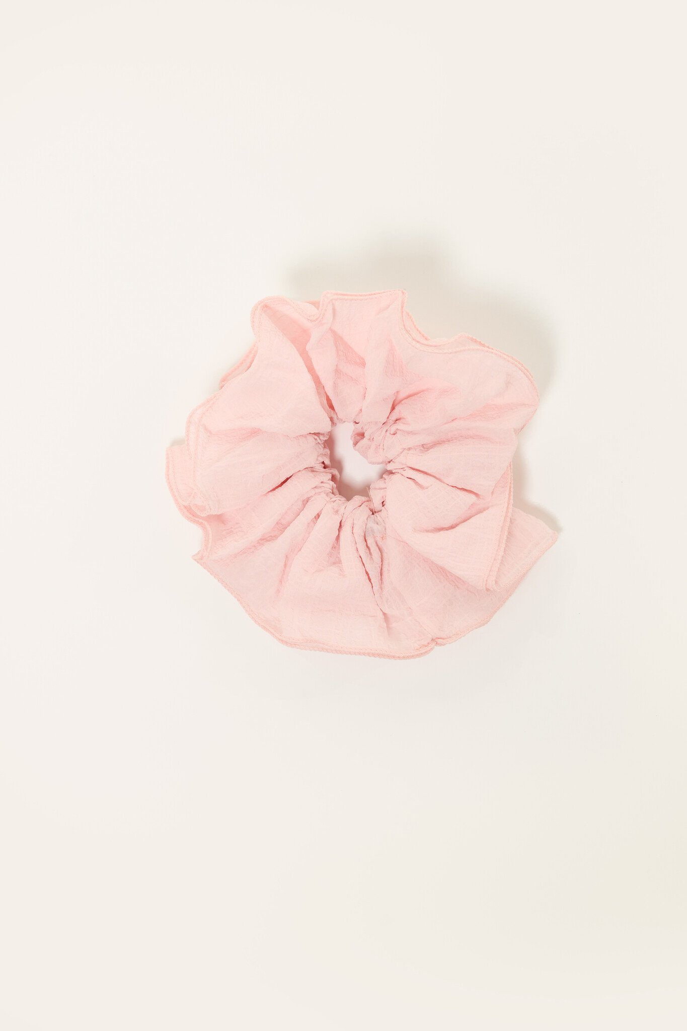 Deze oversized scrunchie in lichtroze is het perfecte accessoire om je haar en je outfit net wat extra te geven. De grote scrunchie zorgt voor een speelse en trendy uitstraling en maakt je outfit meteen af. Draag de roze scrunchie in een staart, bun of om je pols als accessoire. De oversized haar scrunchie is makkelijk te combineren en geeft elke look een zachte en stijlvolle touch.