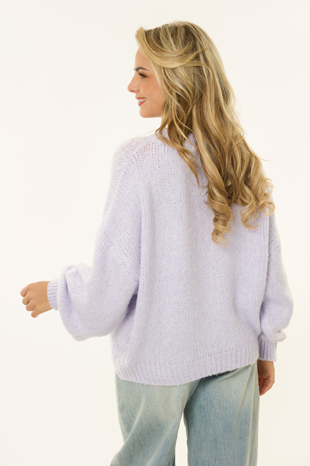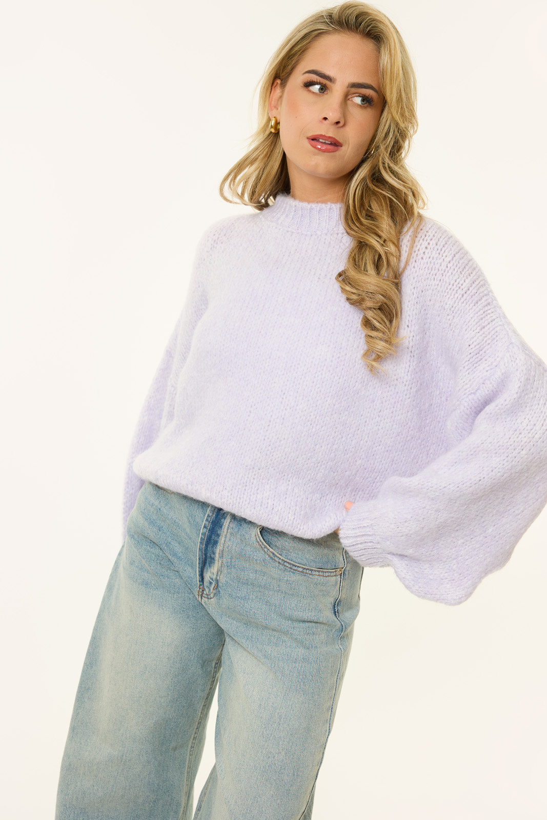 Deze lila gebreide/ fluffy trui is een echte musthave voor de koudere dagen. De zachte, wollige stof voelt heerlijk warm aan en de losse fit zorgt voor een comfy, nonchalante look. De ballonmouwen geven de trui een fun touch, terwijl de paarse kleur zorgt voor een frisse, feminine uitstraling. Draag de knit met een jeans en sneakers voor een casual look of combineer met een rok en laarzen voor een cozy, maar stijlvolle outfit.