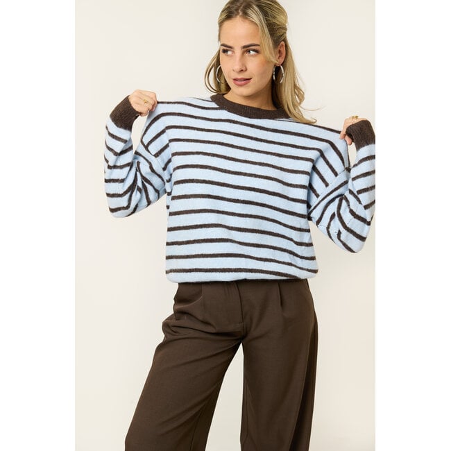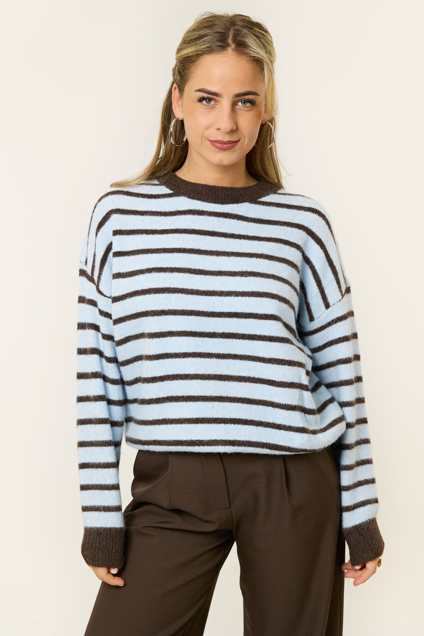 Deze gestreepte trui is zo’n item dat je er makkelijk bij pakt. De zachte stof en losse fit zorgen voor een comfortabele, cozy look, terwijl het streeppatroon hem net wat speelser maakt. Fijn om casual te dragen met een jeans, maar ook leuk te combineren met een nette broek voor een meer aangeklede outfit. Comfortabel, stijlvol en makkelijk te combineren: een echte everyday favoriet.