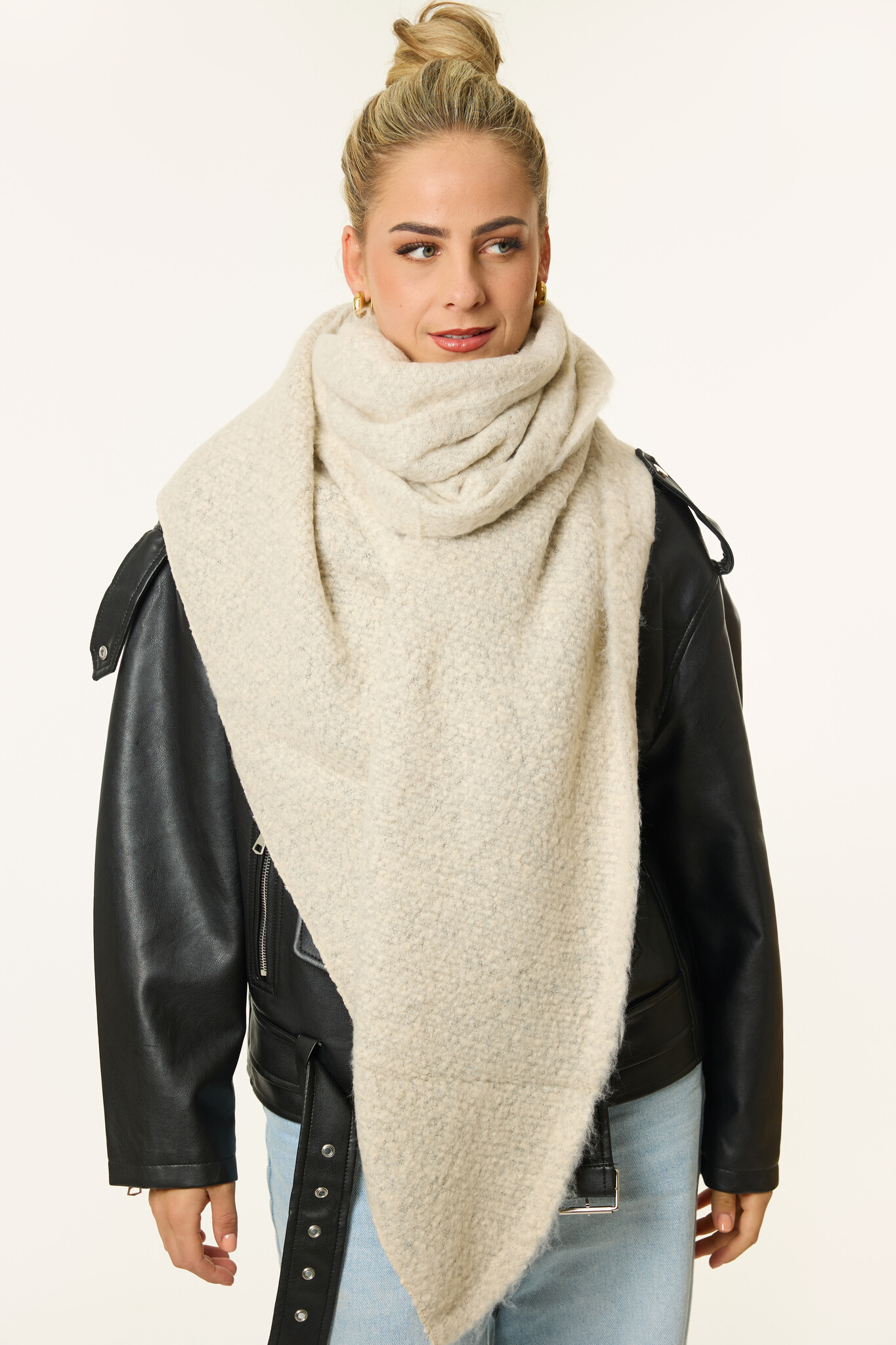 Deze beige sjaal is zo’n item dat je non-stop wilt dragen zodra het kouder wordt. De zachte, fluffy stof voelt heerlijk warm aan en het oversized model geeft je eindeloos veel stylingopties: draag de sjaal losjes over je jas of wikkel de sjaal knus om je hals. De neutrale beige kleur maakt deze dames sjaal super veelzijdig en makkelijk te combineren, van casual met een leren jasje tot classy met een trenchcoat. Perfect voor herfst en winter.