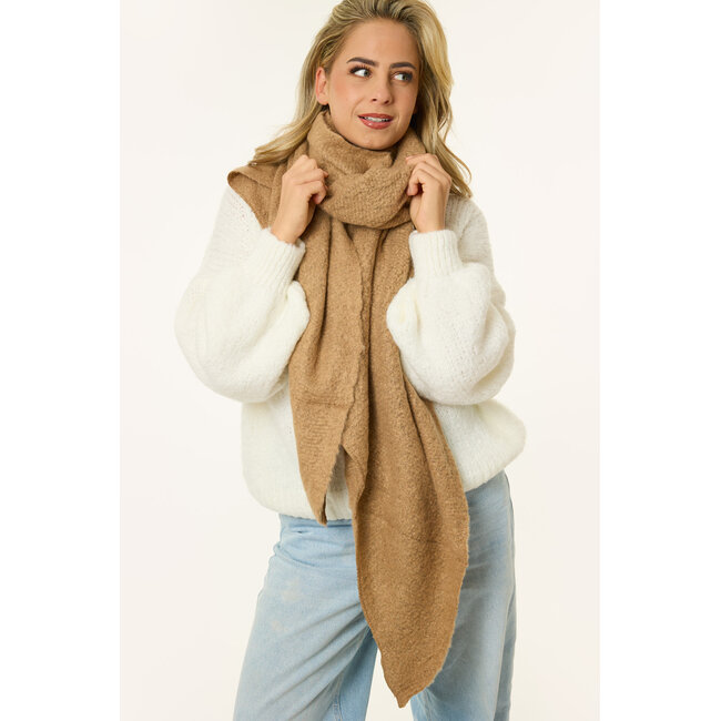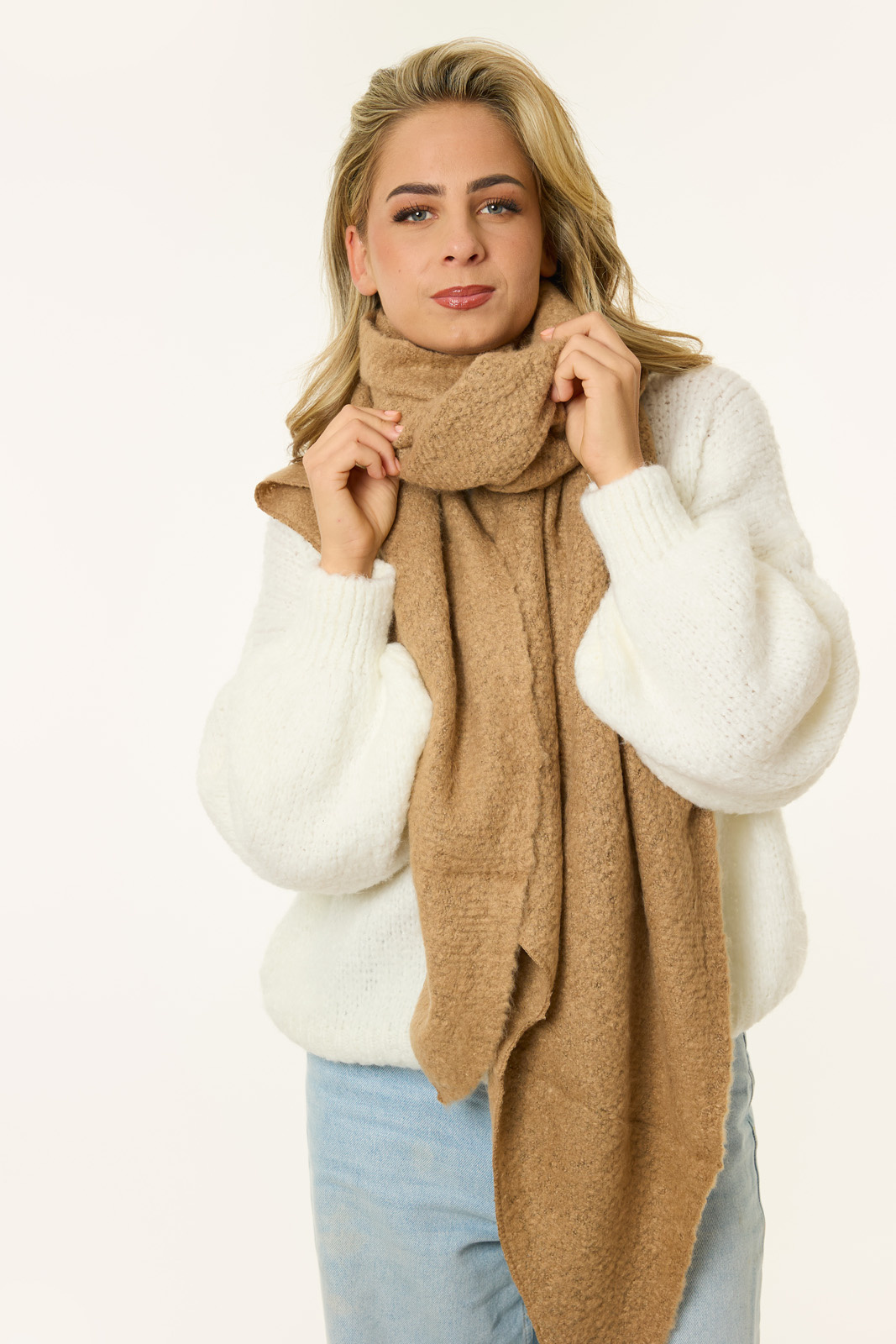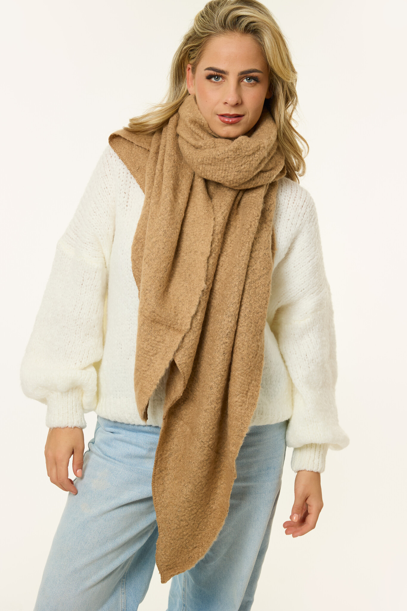 Deze camel sjaal is het ultieme accessoire om je herfst- en winterlook compleet te maken. De zachte, fluffy stof voelt heerlijk warm aan en maakt elke outfit cozy én stijlvol. Dankzij de neutrale camel kleur match je deze dames sjaal makkelijk met je hele garderobe, van een basic trui tot een nette jas. Of je de sjaal nu los draagt of nonchalant om je heen slaat, deze oversized sjaal geeft altijd een fashionable touch.