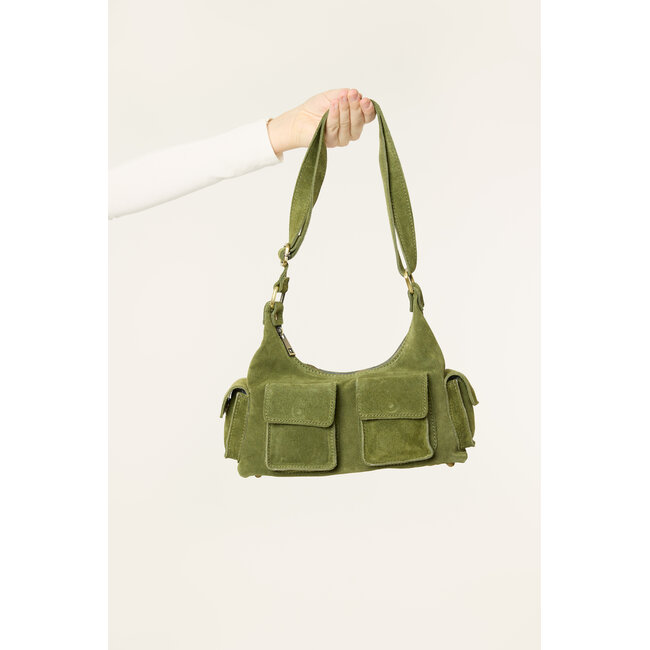 Deze groene suède schoudertas is een echte eyecatcher en perfect om je outfit net dat beetje extra te geven. De tas heeft een mooi model en is voorzien van vakken op de tas, wat zorgt voor een stoere en trendy uitstraling.