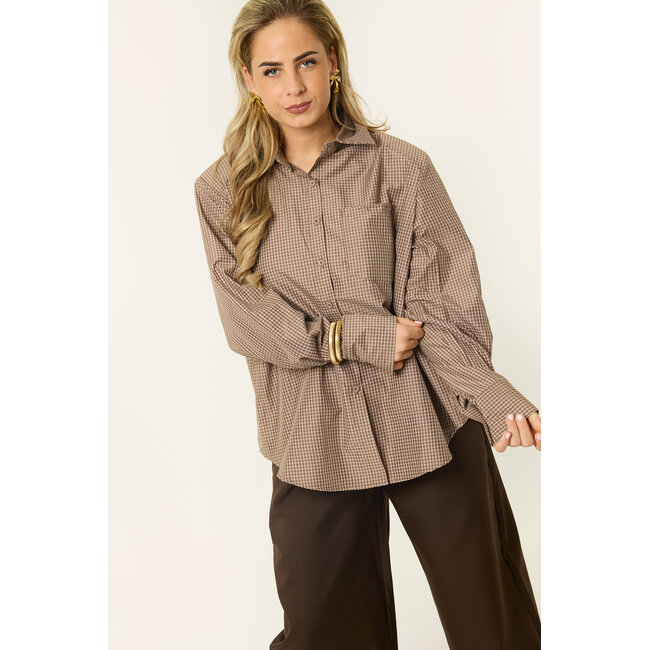 Deze blouse is zo’n item dat je er makkelijk even bij pakt en toch meteen goed zit. De fijne print en zachte bruintint geven de blouse een rustige, stijlvolle uitstraling, terwijl de losse fit zorgt voor een nonchalante look. Draag de blouse casual met een jeans of combineer met een nette pantalon voor een meer geklede outfit, dit is zo’n blouse die je het hele seizoen door blijft dragen.