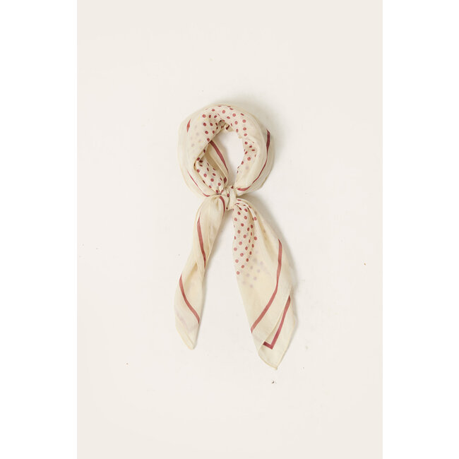 Geef je look een speelse of elegante twist met deze beige sjaal met rode polkadots. Gemaakt van een luchtige, soepelvallende stof en afgewerkt met een chique randdetail. Draag het als neksjaaltje, in je haar of knoop hem aan je tas voor een subtiele retro vibe. Dit accessoire is klein maar krachtig, perfect om elke outfit nét dat beetje extra te geven. Tijdloos, veelzijdig én helemaal on trend. ❤