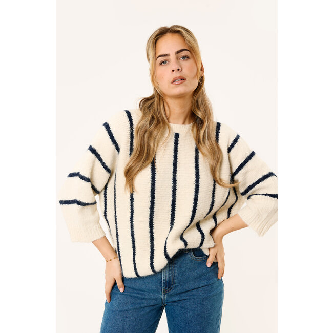 Soof gestreepte trui met korte mouw | Wit/donkerblauw