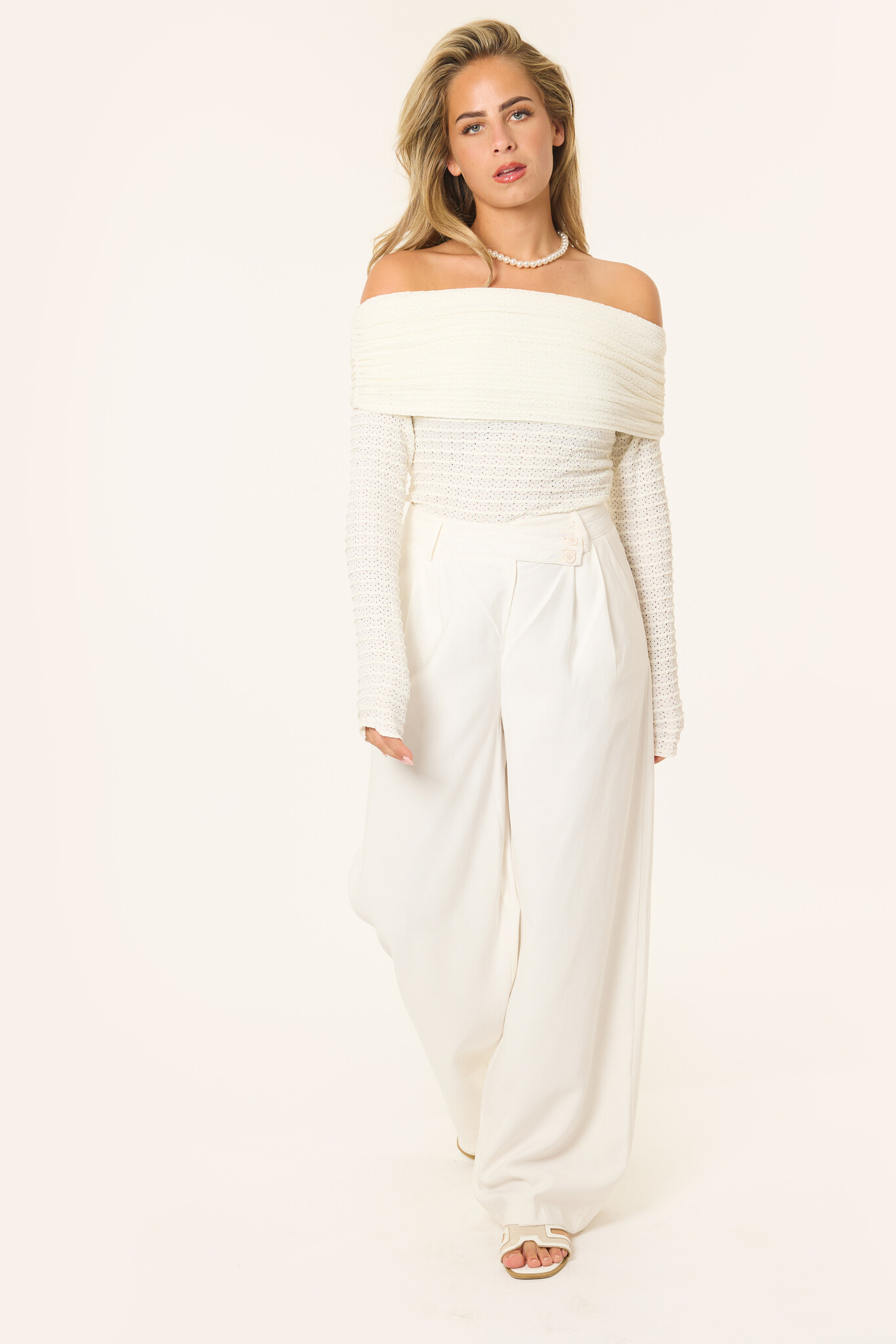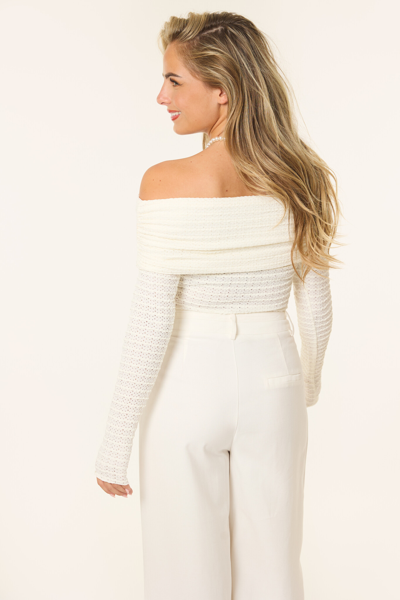 Deze witte off shoulder longsleeve top is een perfecte basic met net dat beetje extra. Gemaakt van een zachte stretchstof waardoor de top super comfortabel zit en mooi aansluit. Perfect om te dragen naar een night out, of casual met een jeans.