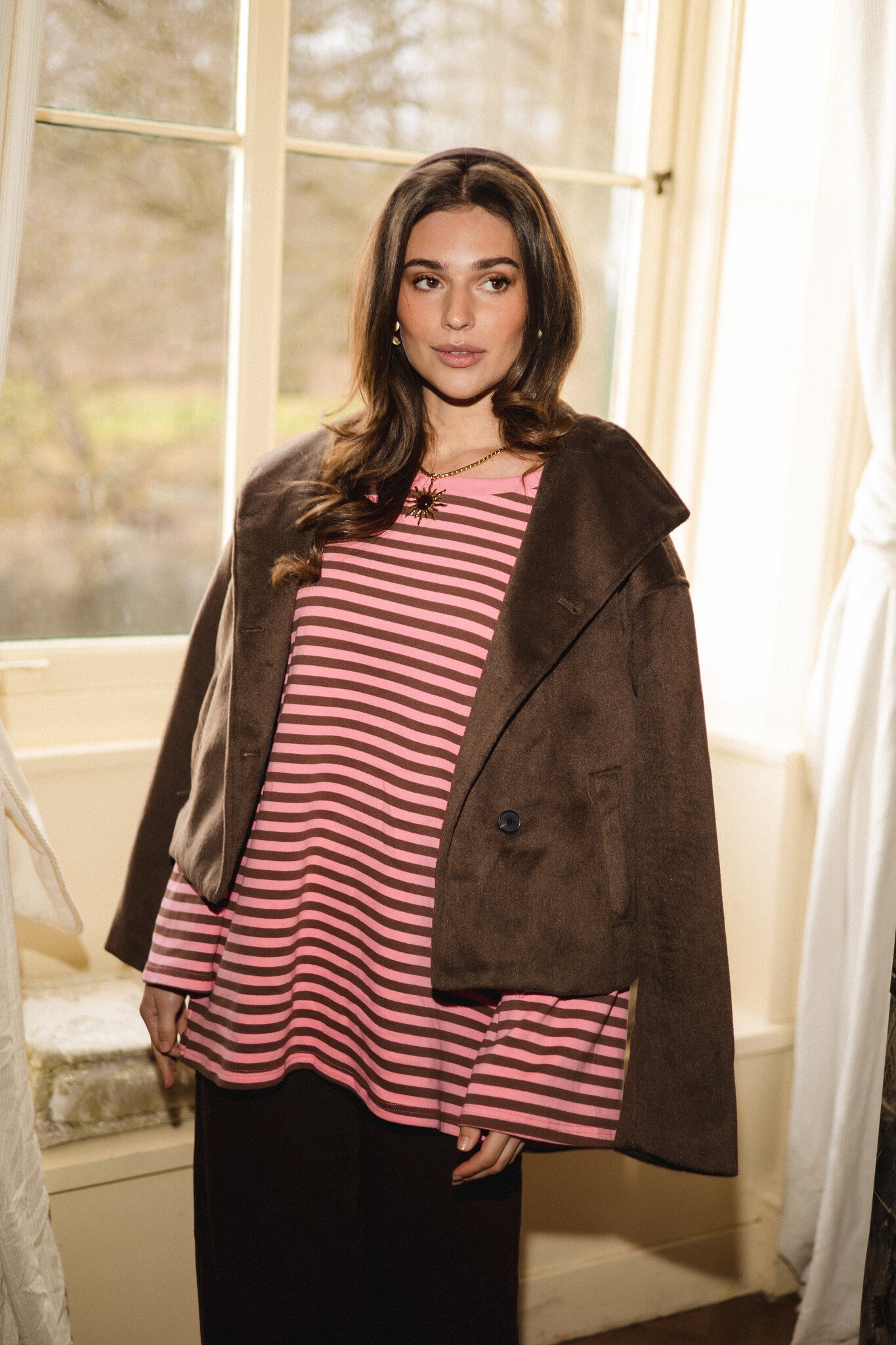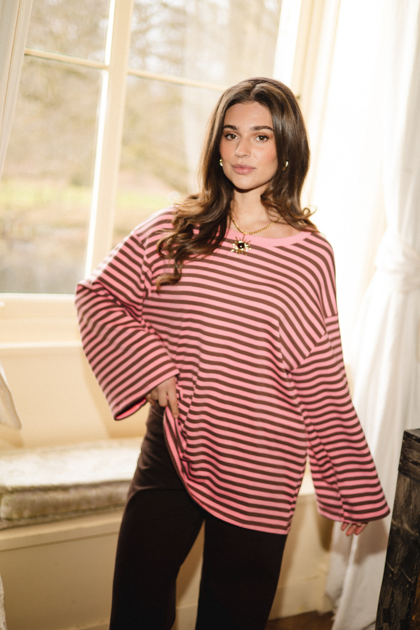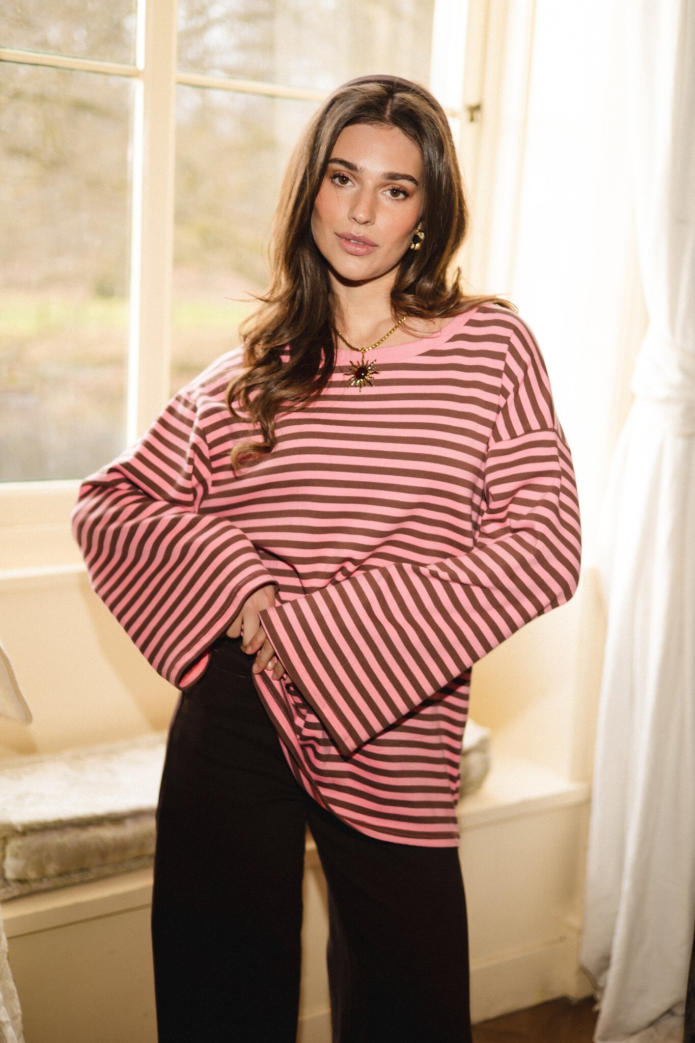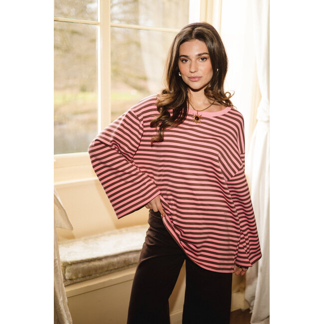 Deze roze/bruin gestreepte longsleeve is zo’n basic die je overal bij pakt. Zacht, comfortabel en perfect voor elke dag. De horizontale strepen geven dit oversized lange mouwen shirt een tijdloze, trendy look, terwijl de relaxte pasvorm zorgt voor een heerlijke fit. Draag ‘m casual op een jeans of wide leg broek, of style ‘m onder een blazer voor een vrouwelijke uitstraling.