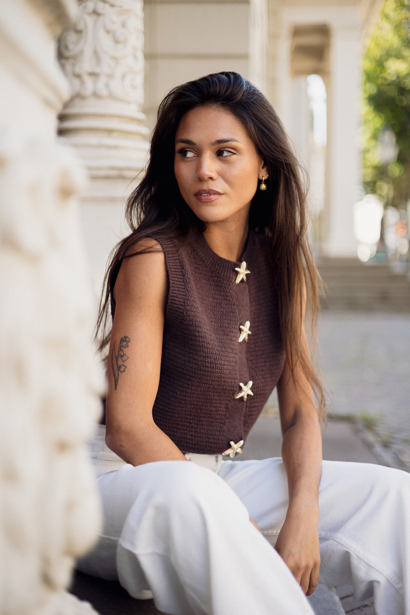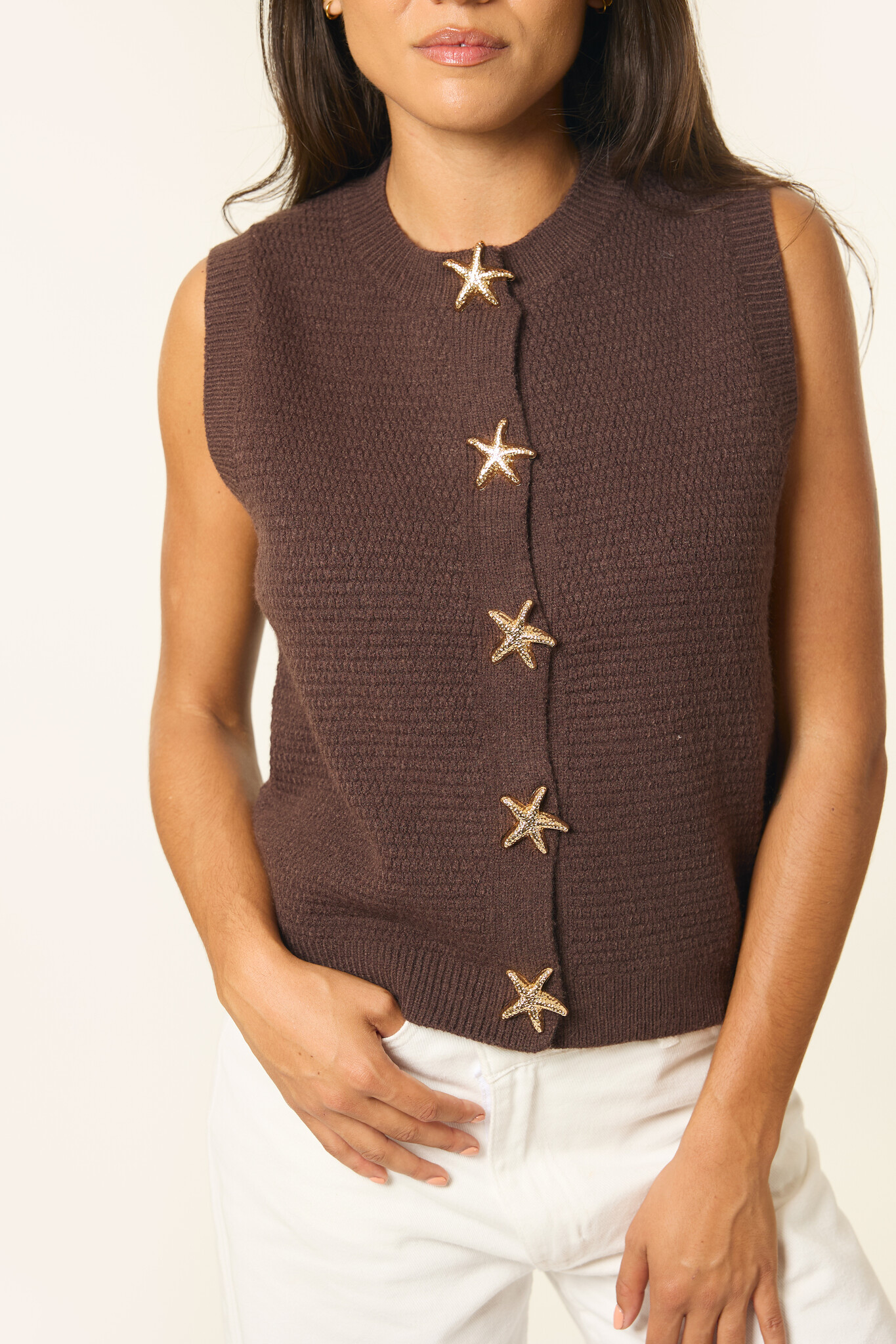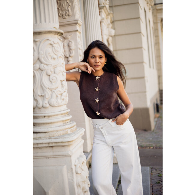 Beoordeel Veerle spencer met zeester knoopjes | Bruine