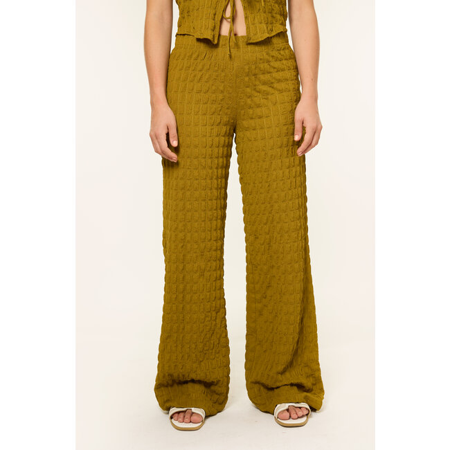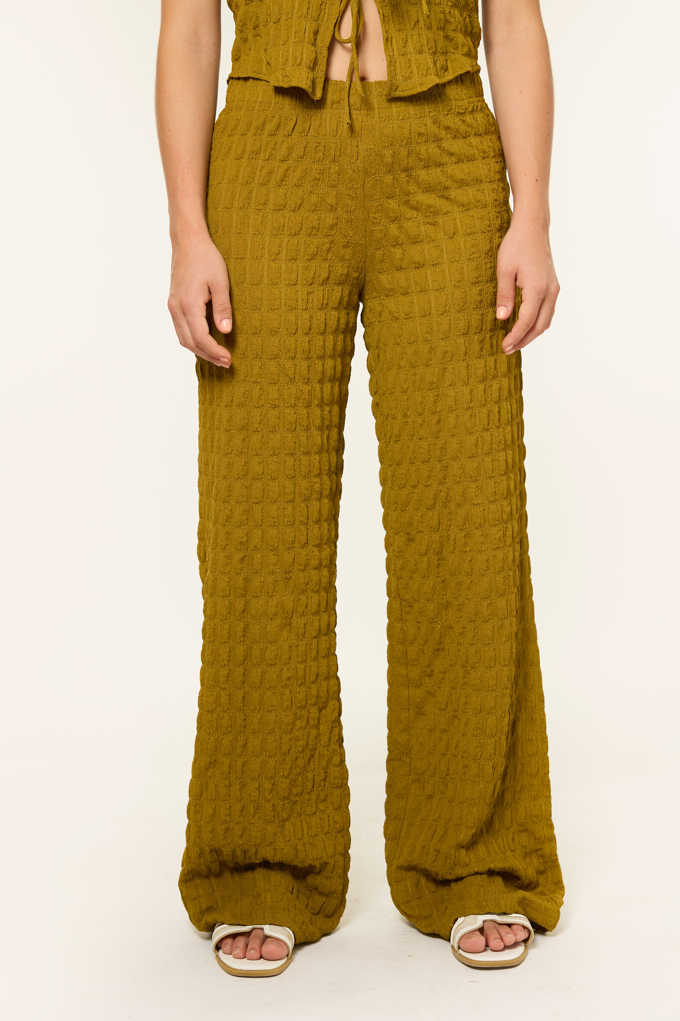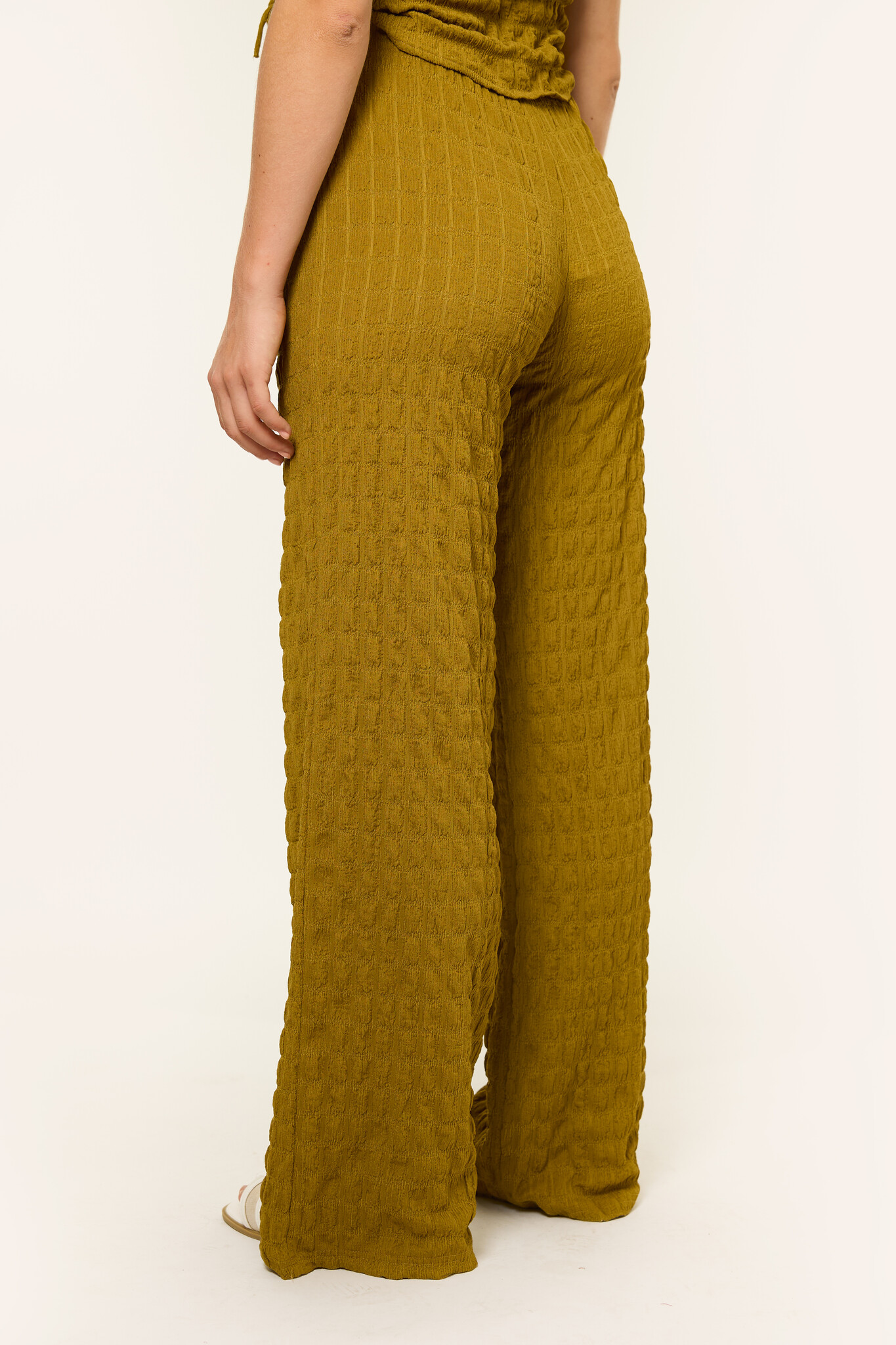 Deze olijfgroene broek wil je hebben! De pantalon heeft een high waisted fit en rechte pijp! En extra leuk, de broek maakt deel uit van een co-ord set met de matching gilet top met strikjes. Draag het samen als set voor een complete look, of combineer los met een basic top of oversized tee. Ready voor een dagje stad, terras of festival.