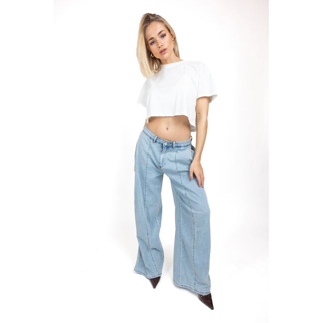 Deze lichtblauwe wide leg jeans is een echte must-have voor je garderobe. De wide leg denim broek heeft wijde pijpen en een comfortabele pasvorm, wat zorgt voor een mooie fit en trendy look. Dankzij de lichtblauwe kleur is de jeans makkelijk te combineren met verschillende outfits. Draag de lichtblauwe wide leg denim broek bijvoorbeeld met een top, blouse of blazer voor een trendy look. Een fijne wide leg spijkerbroek die perfect past bij een casual maar stijlvolle outfit.