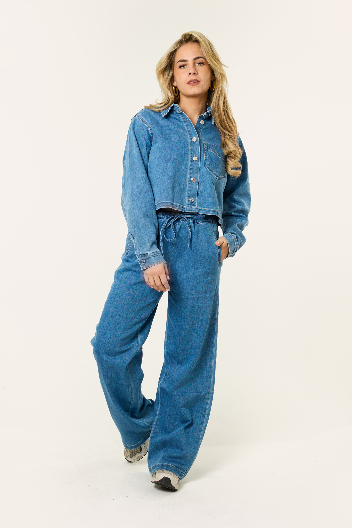 Deze denim jacket/top is zo’n item dat je er steeds weer bij pakt. De stevige maar soepele denimstof geeft de blouse een stoere uitstraling, terwijl de korte lengte en rechte fit zorgen voor een moderne, vrouwelijke look. De knoopsluiting en borstzak maken het ontwerp tijdloos en makkelijk te stylen. Draag de top als jacket over een basic top of als set met de bijpassende Wies jeans voor een complete denim-on-denim look. Een veelzijdige must-have die je moeiteloos het hele seizoen door draagt.