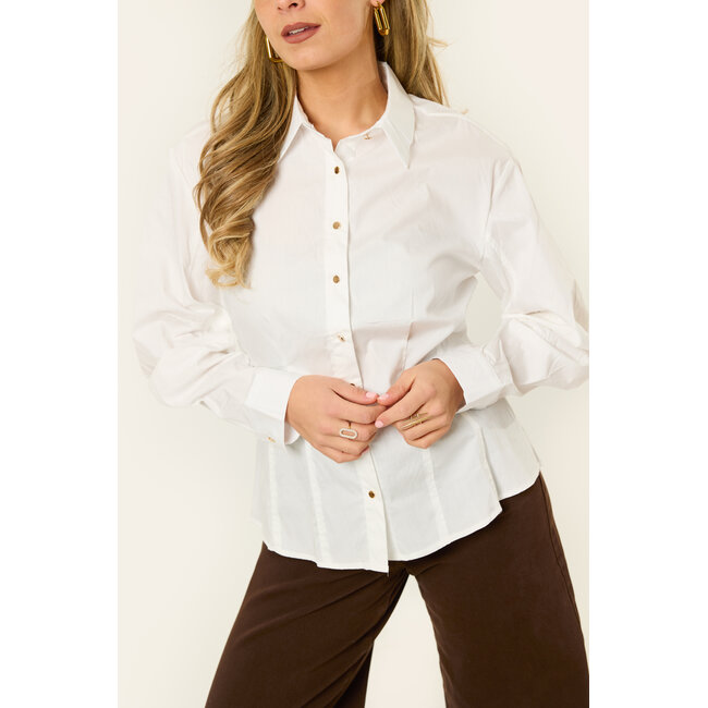 Deze witte blouse is zo’n fijne basic die je altijd uit de kast pakt. De soepele, lichte stof zit super comfortabel en valt mooi, terwijl de kraag en knoopjes zorgen voor een nette, frisse look. De zachte gele kleur maakt de blouse lekker vrolijk en makkelijk te combineren.