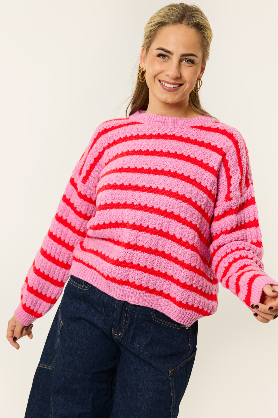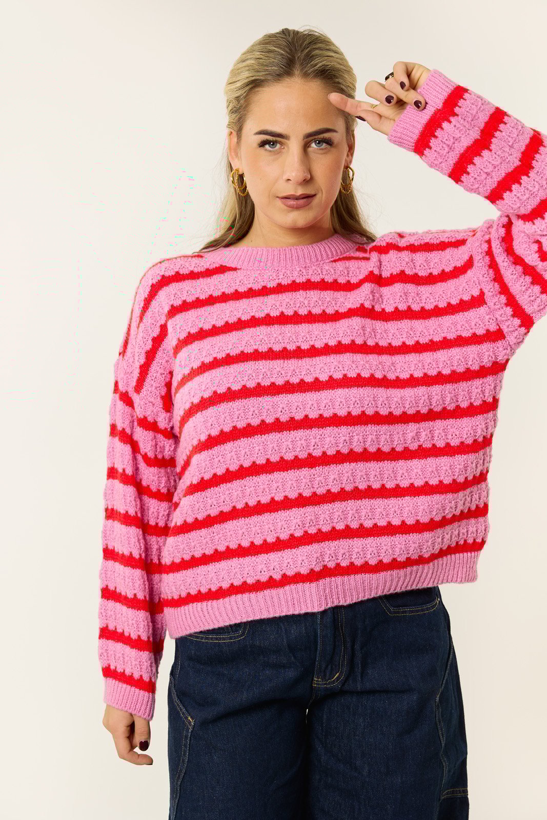 Deze gestreepte gebreide trui is de perfecte cozy essential voor het nieuwe seizoen. De zachte knit voelt heerlijk comfortabel aan, terwijl het fun kabel- en streepdesign je outfit net wat extra’s geeft. Dankzij de relaxed fit valt de trui mooi oversized, ideaal om casual te stylen met je favoriete jeans of als warme laag op koudere dagen. Een fijne knit die je moeiteloos elke dag draagt én combineert.